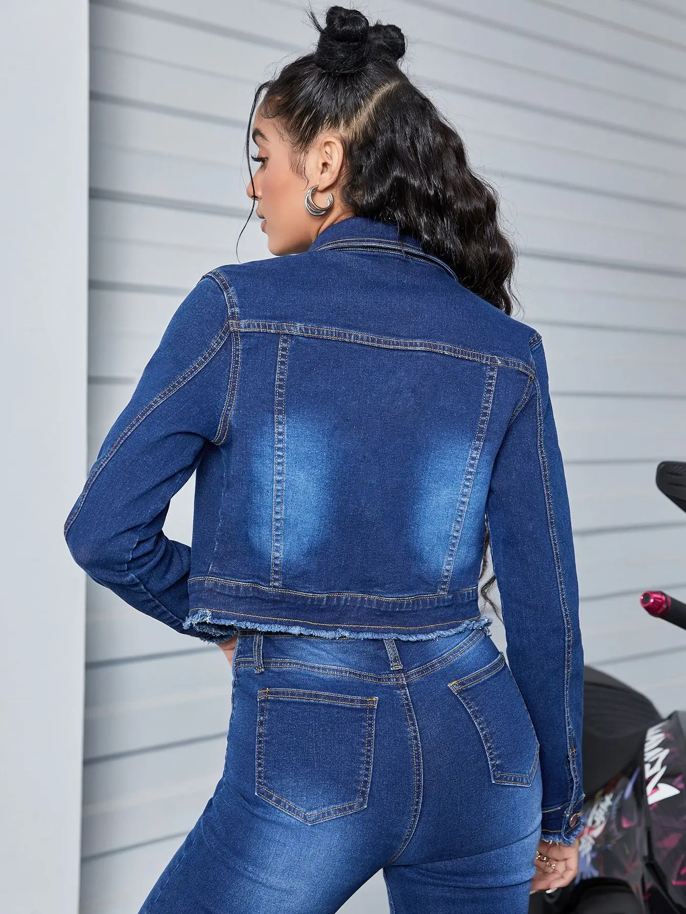 2026 Cross-border European and American Denim Women's Jacket for Women's Retro Lapel Slim Cardigan Versatile Short Denim Jacket
