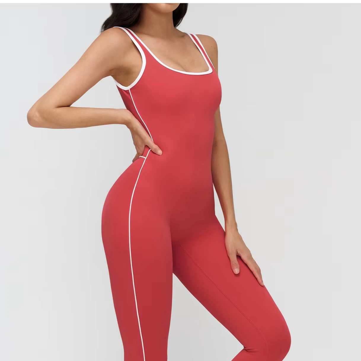 Women Spandex Yoga Jumpsuit Sleeveless Open Back Racerback Breathable Gym Bodysuit Workout Scrunch Pants