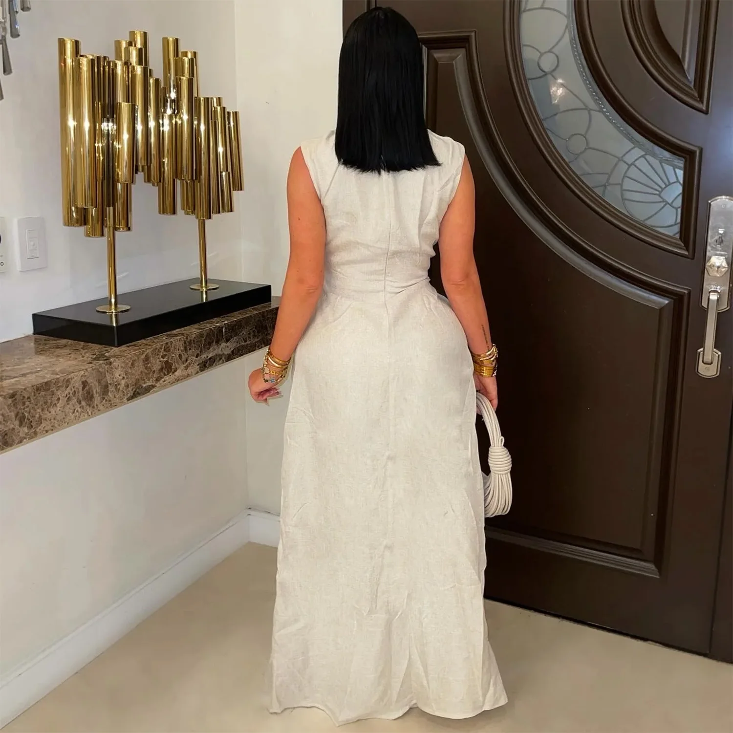 ZYHT 73849 European Wholesale Fashion Casual One Shoulder Ruched Maxi Dress Side Slit Pleated Long Sleeve Dresses for Women