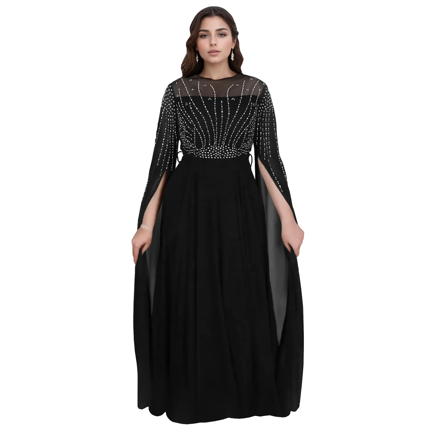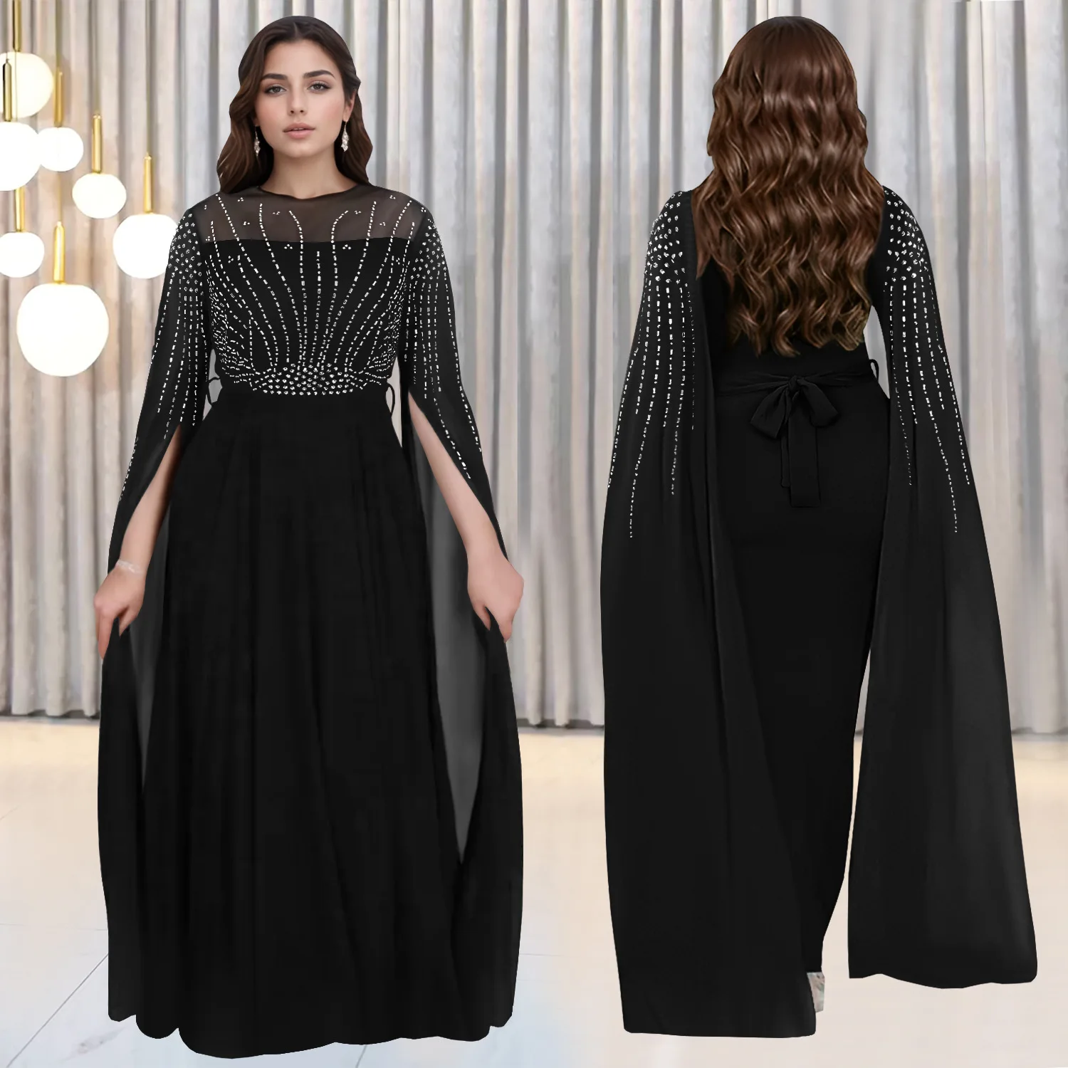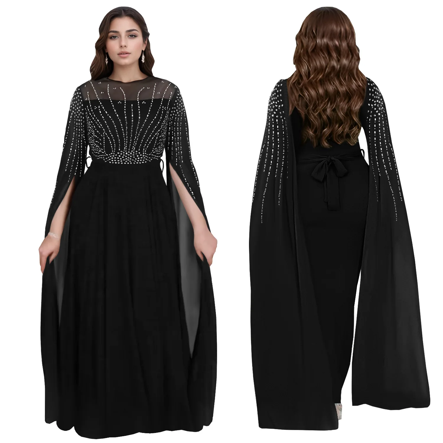 ZYHT 73902 Dark Green Blue Long Sleeve Simple Elegant Evening Dress Customize High End Women Clothing Manufacturer