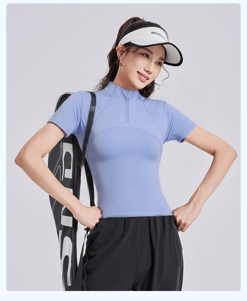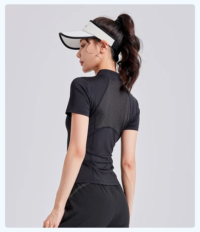 ECO Friendly Round Neck Women Crop Sports Summer Tight Shirts Recycled Fabric Breathable Yoga Short Sleeve Tops Fitness T-shirt