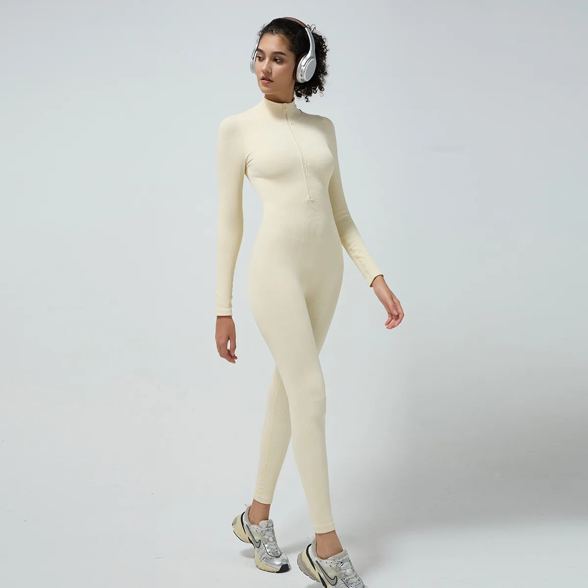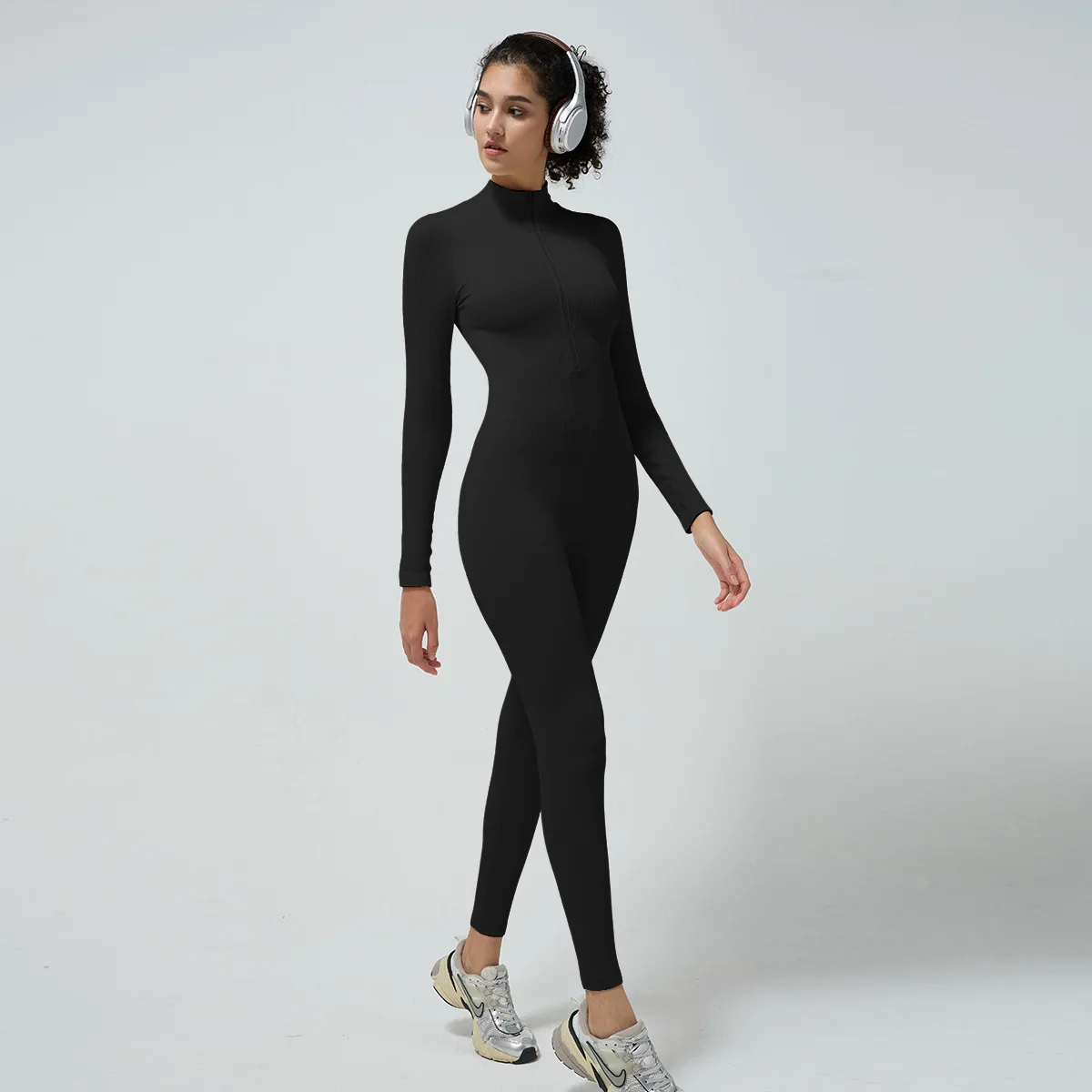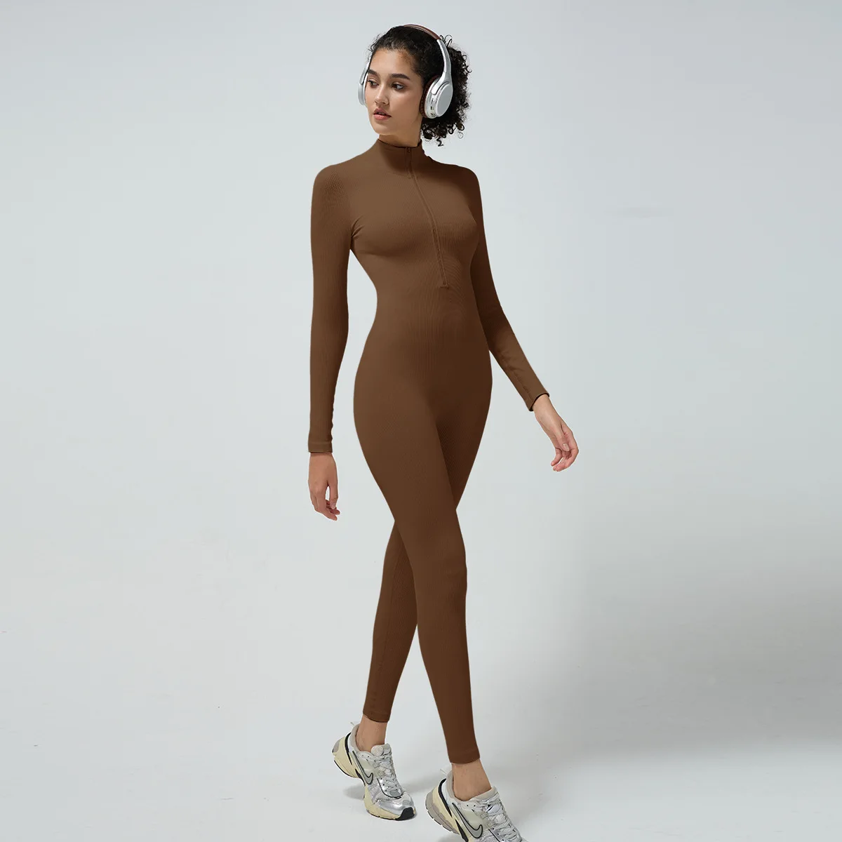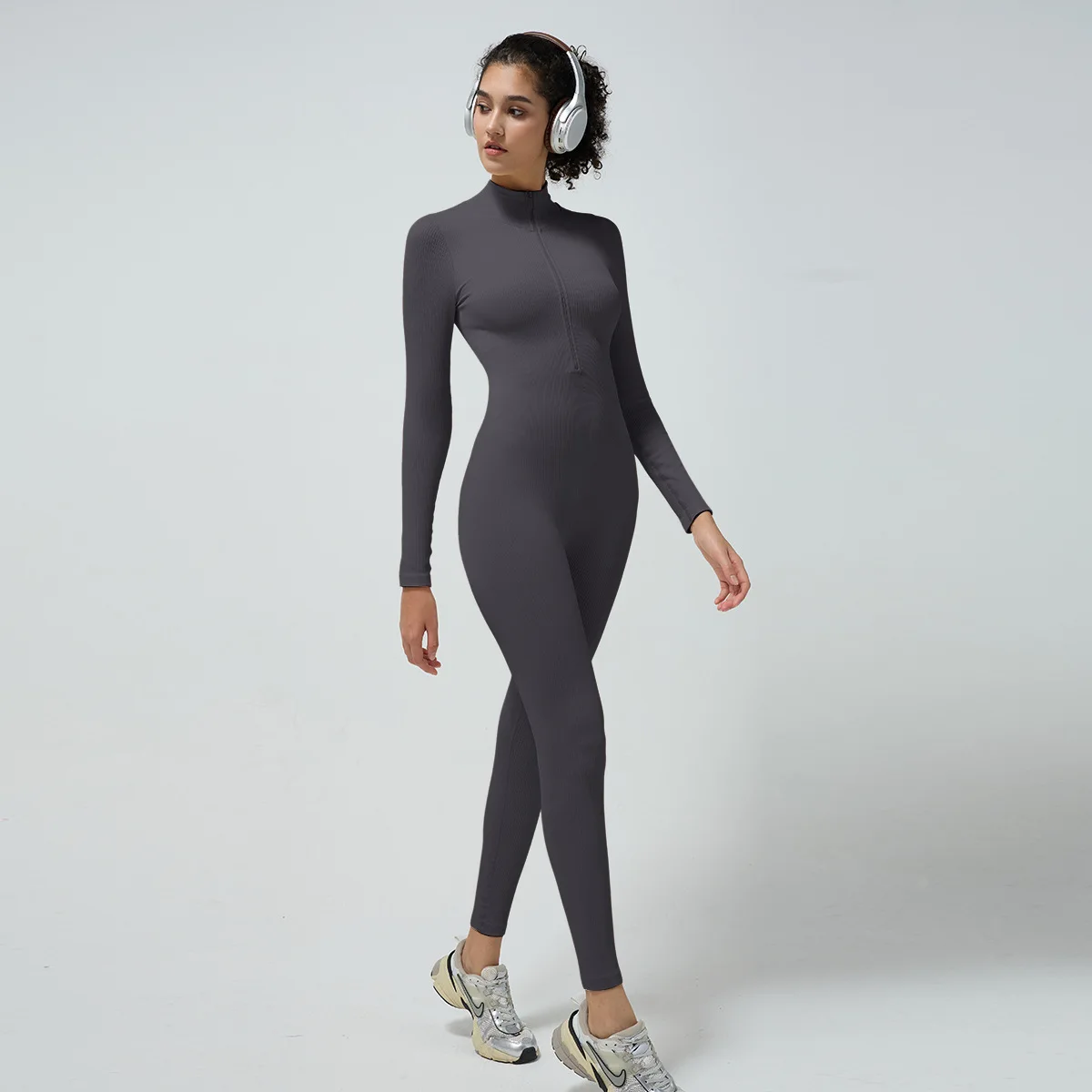 2026 New Custom One Piece Nylon Spandex Women's Long Sleeve Yoga Sports Jumpsuits Gym Workout Jumpsuit With Zip