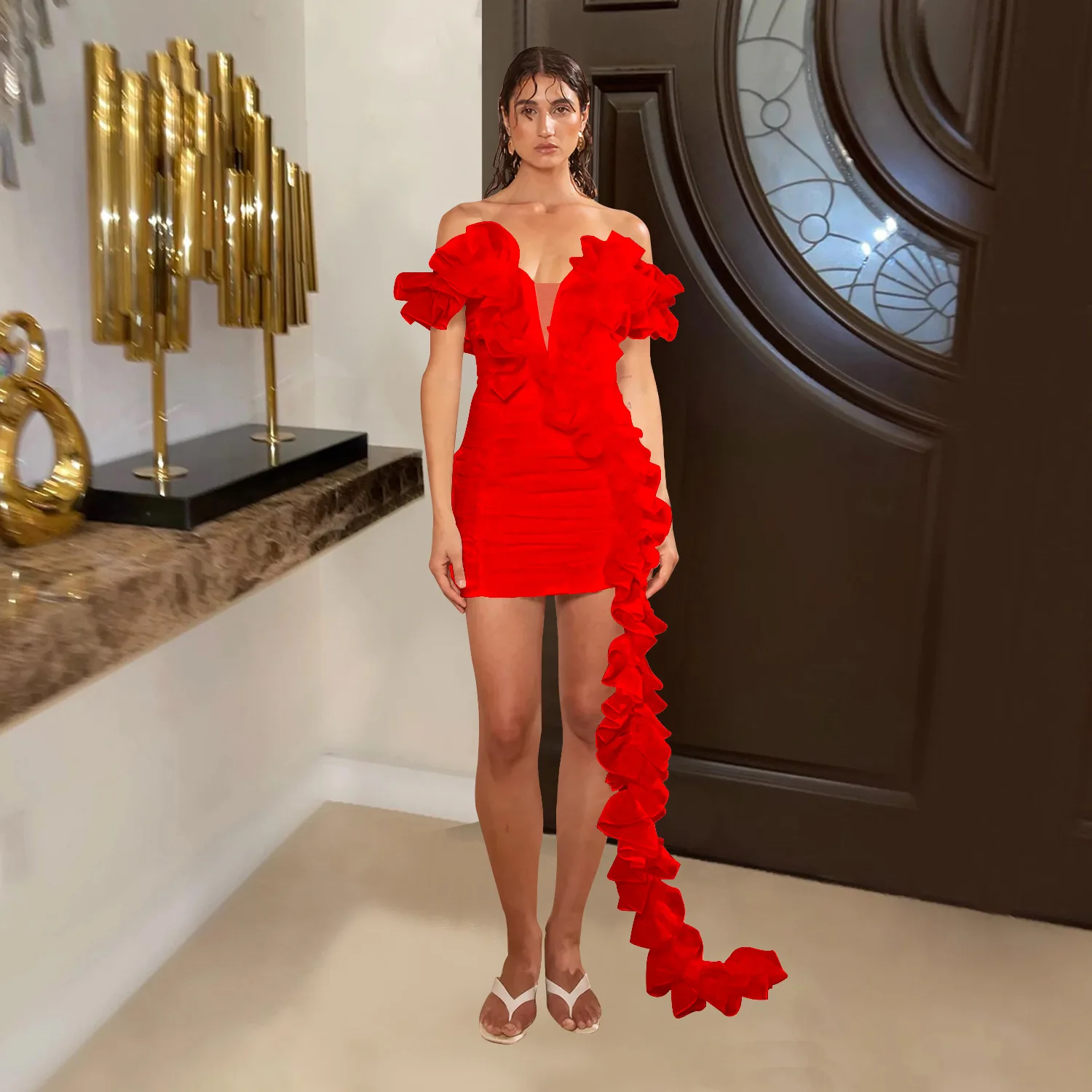 ZYHT 21541 Wholesale Crew Neck High Waist Casual Dresses Elegant Lace Velvet Mermaid Hem Ruched Long Sleeve Dresses for Women