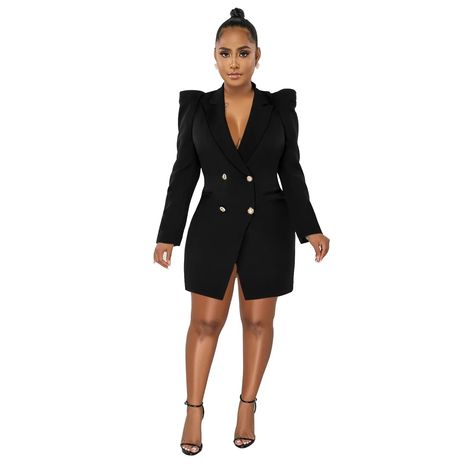 ZYHT 35239 Women's Elegant Black Velvet Blazer with White Ruffled Trim Peplum Hem & Long Puff Sleeves Chic Formal Jacket