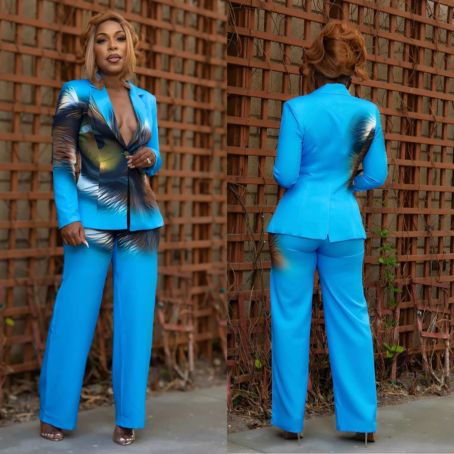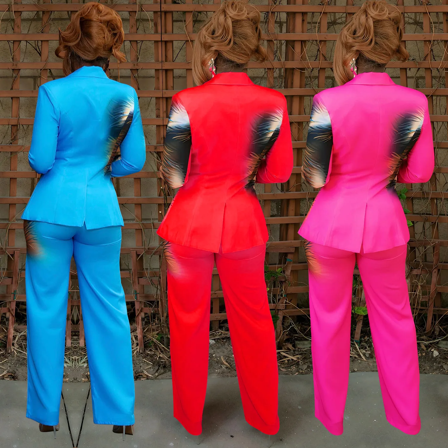 Hot Selling Fashionable Women Long Sleeve Printing Color Suit Blazer and Pants Set for Women Formal Suit
