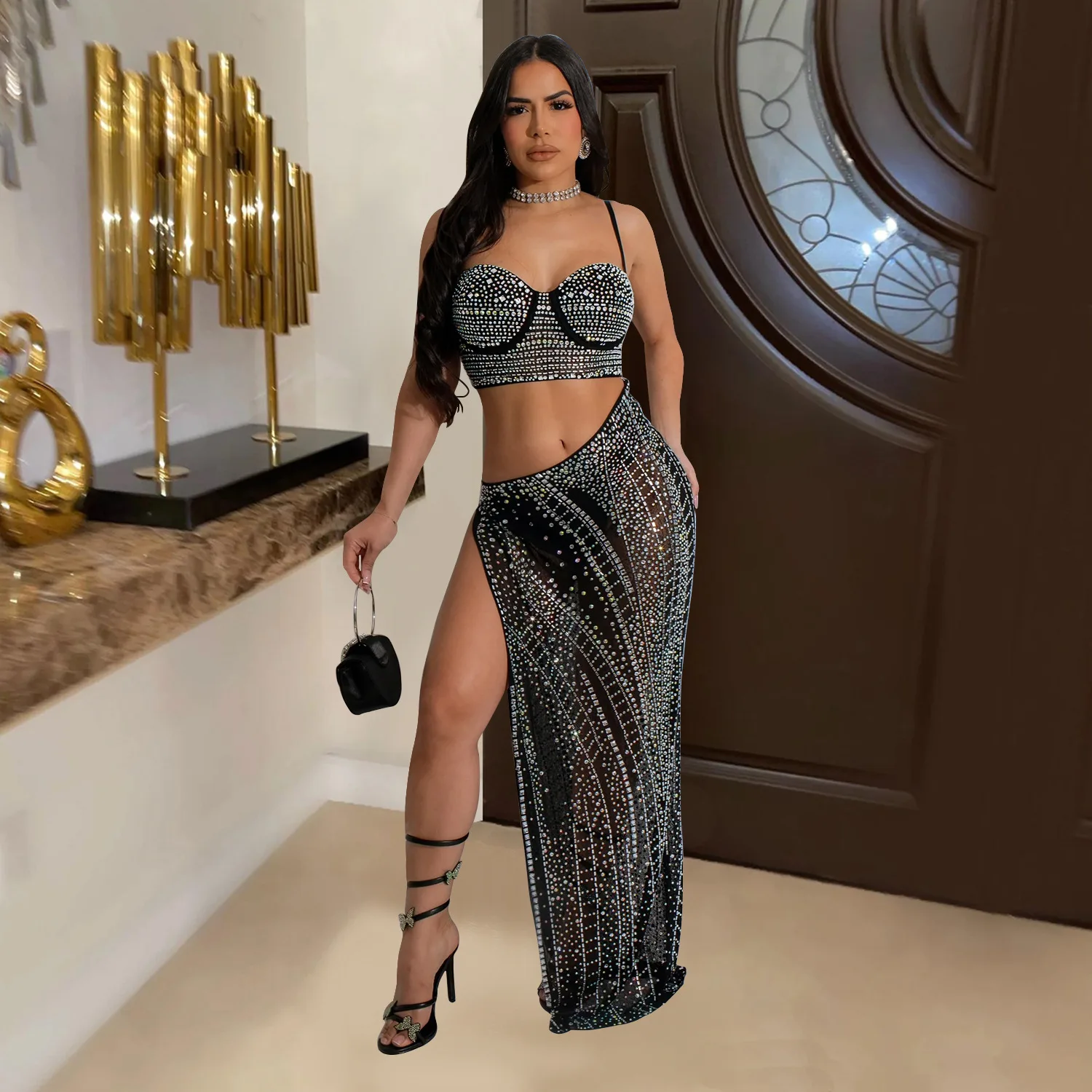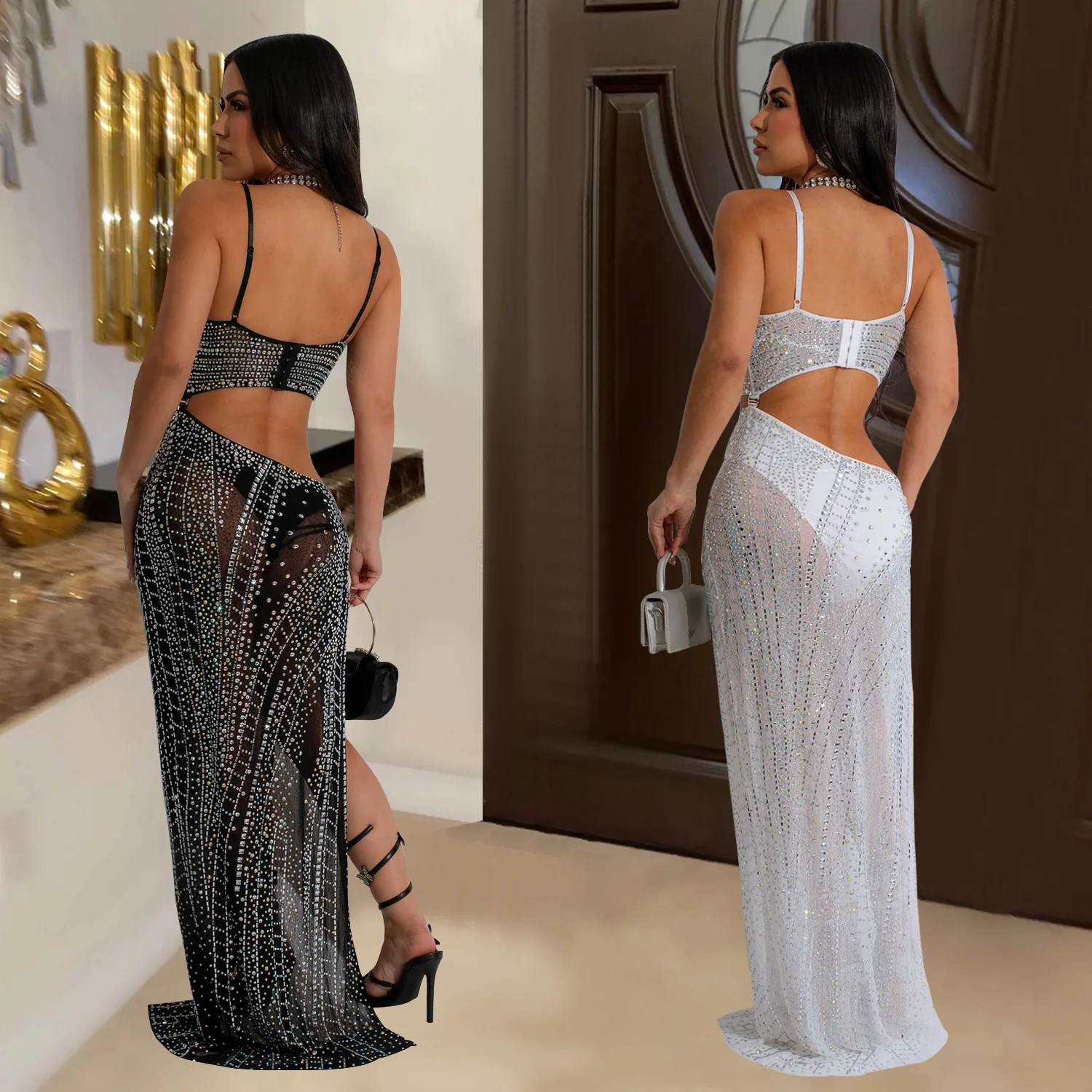 Sexy Bodycon Mini Dress - Women Sequins Tassels Mock Neck Party Club Pencil Dresses Birthday
