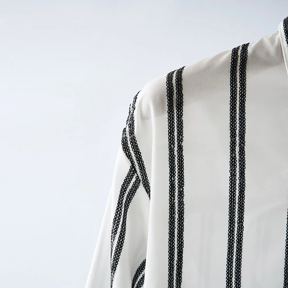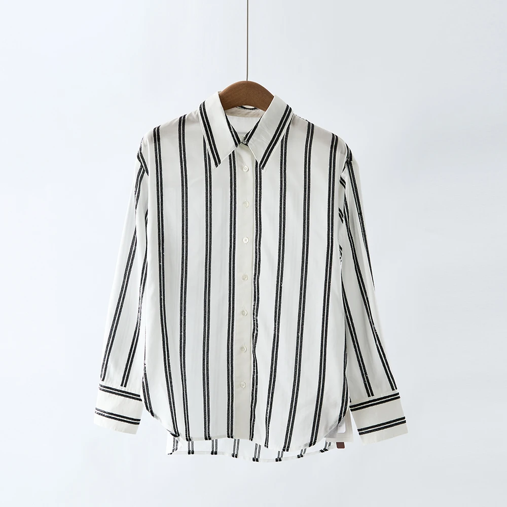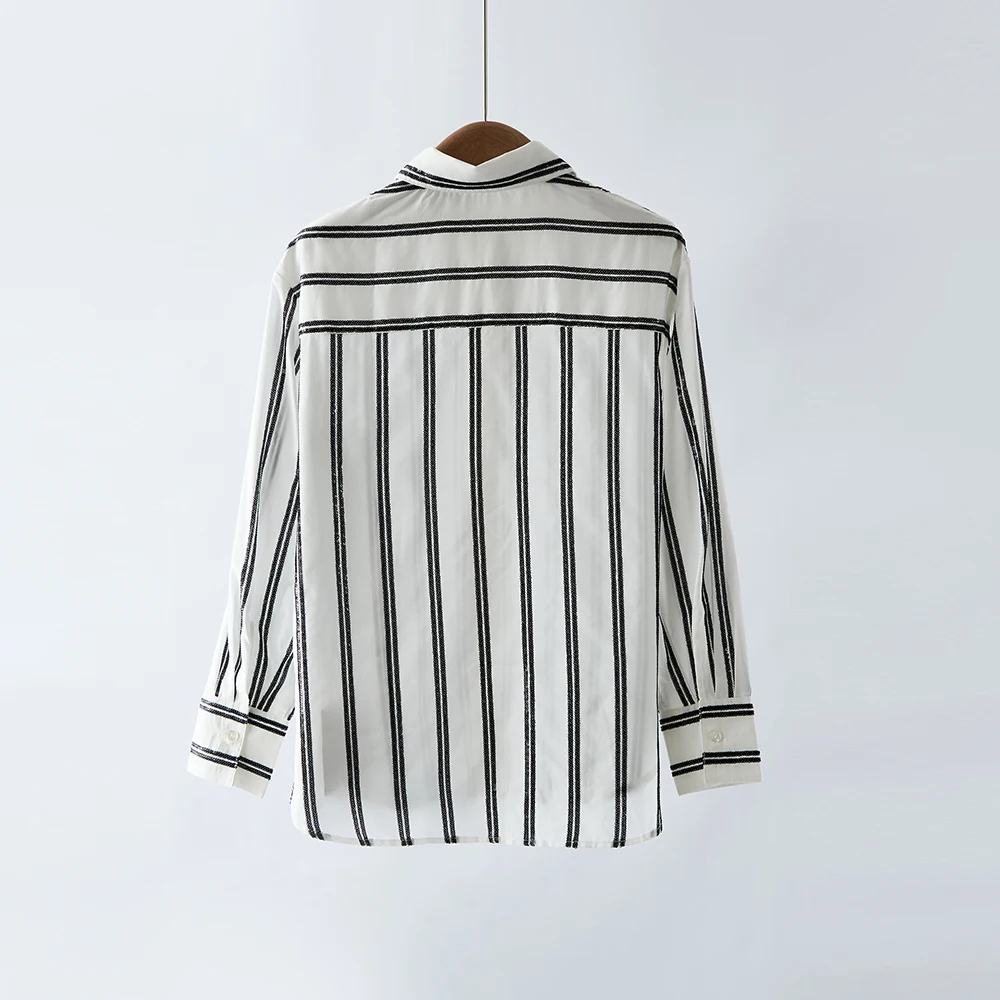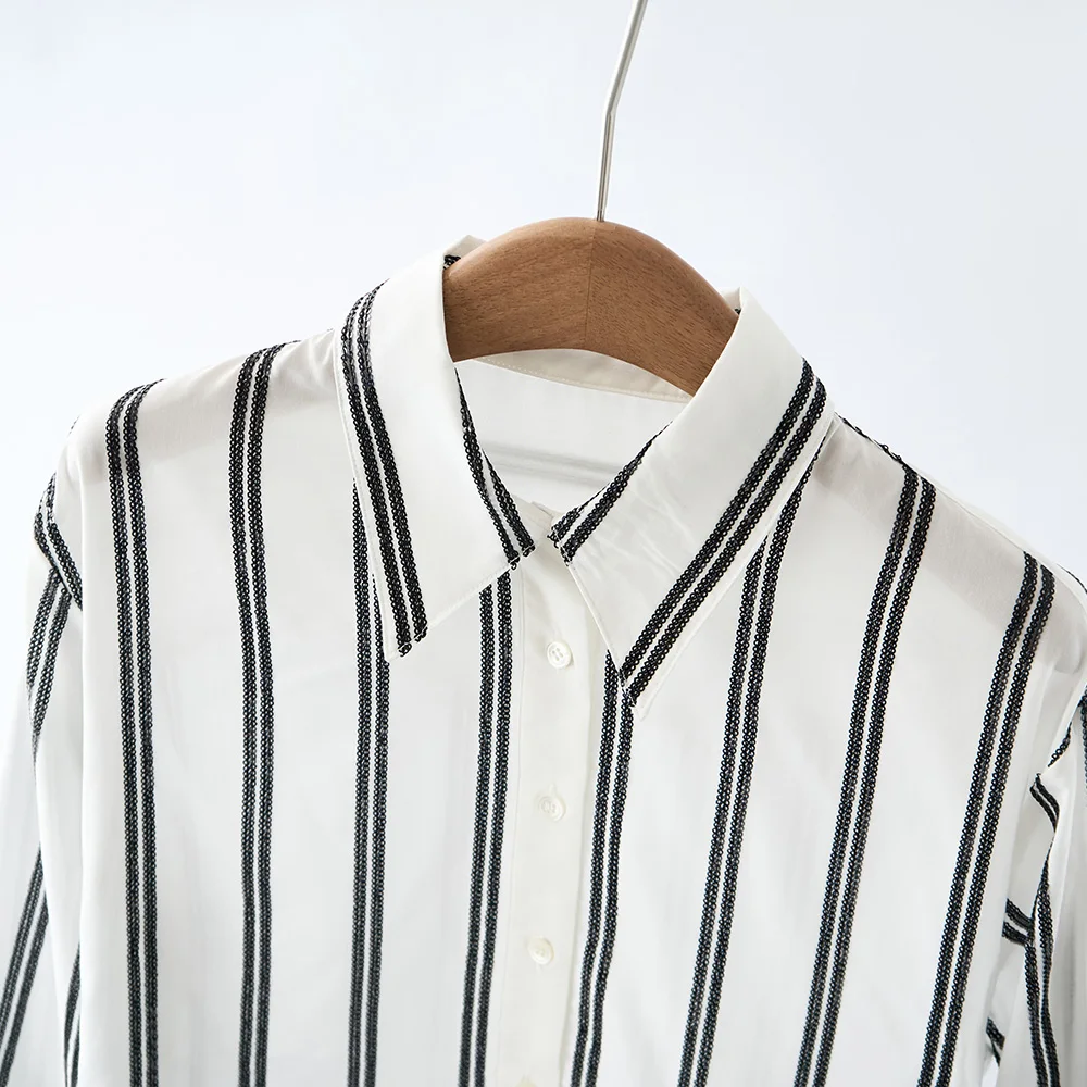 Hand-stitched Sequin Embroidered Women's Shirt, Loose Stripe Design, Exquisite and Versatile, Elegant Office Style