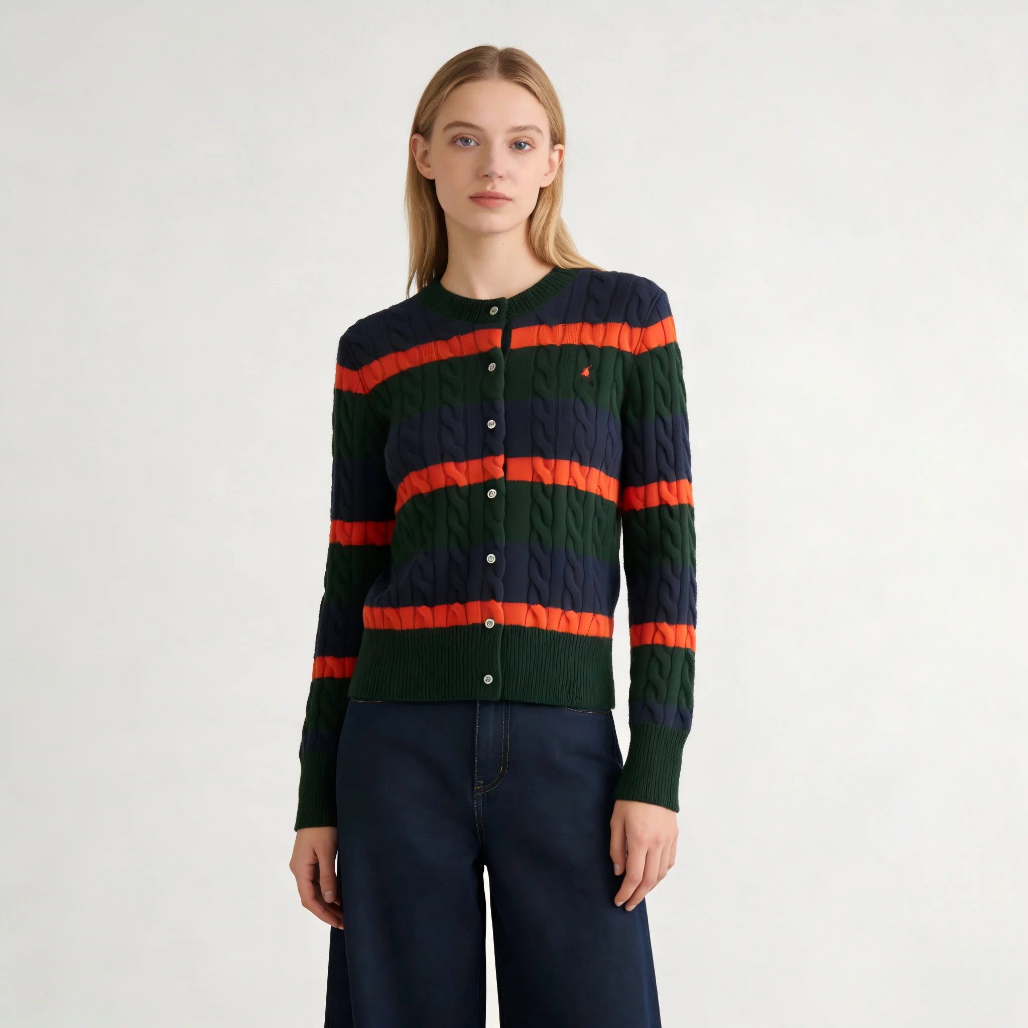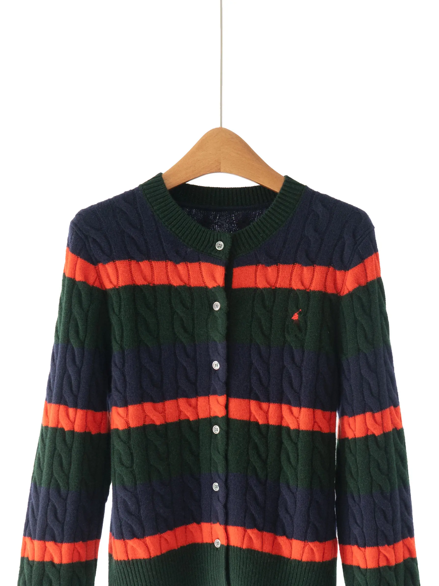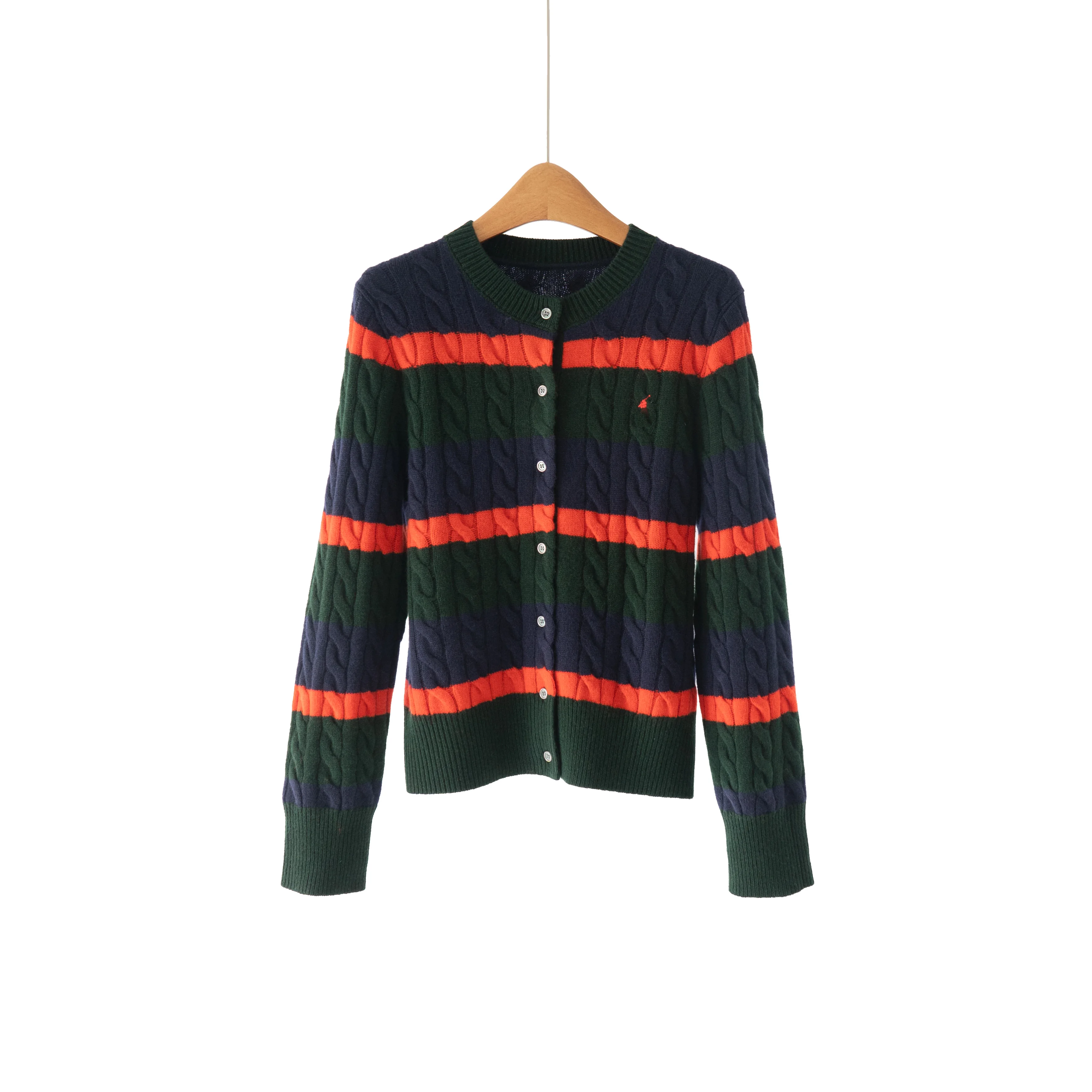 Ralph High Quality 100 Wool Vintage Twisted Texture All-Match Multicolor Striped Knit Cardigan Women