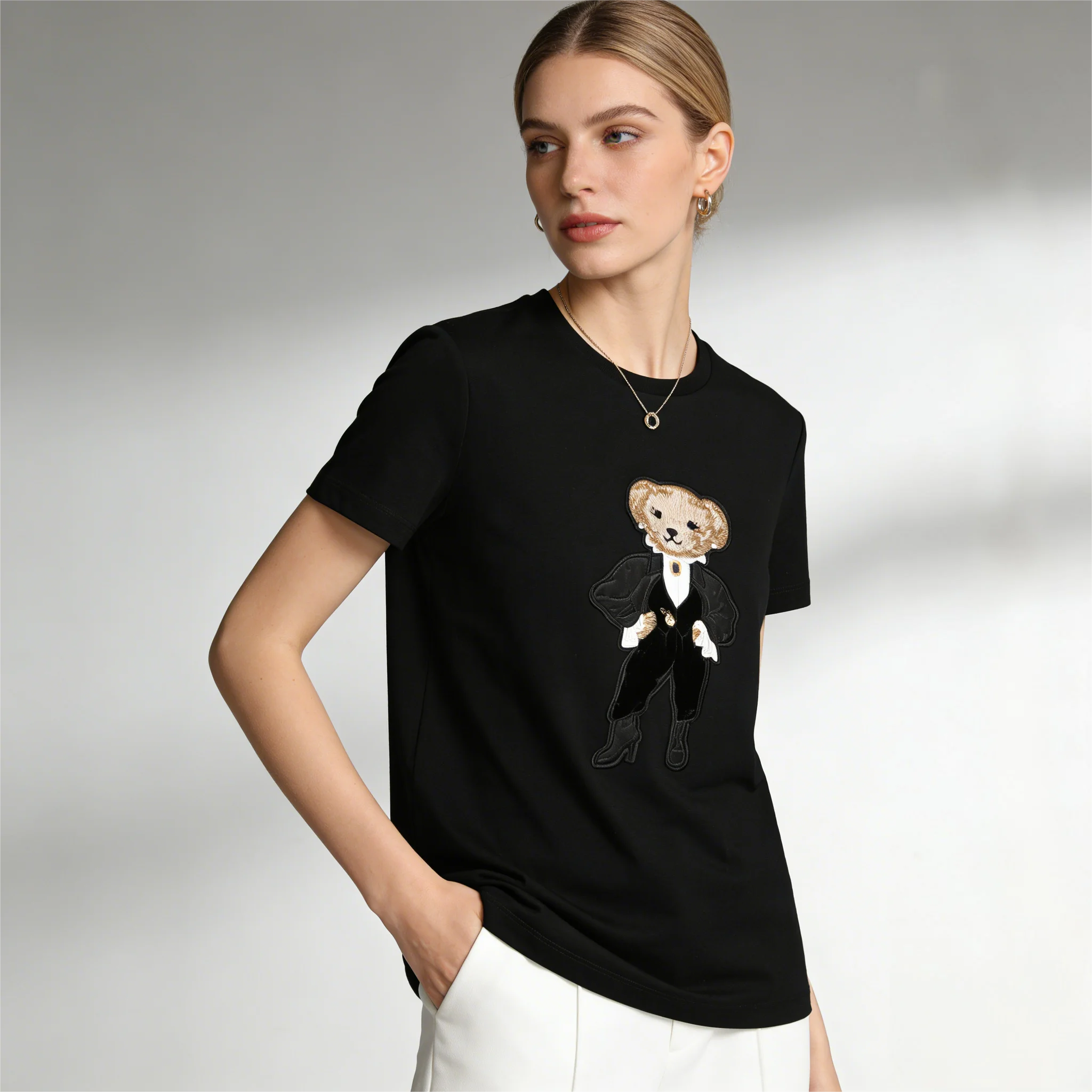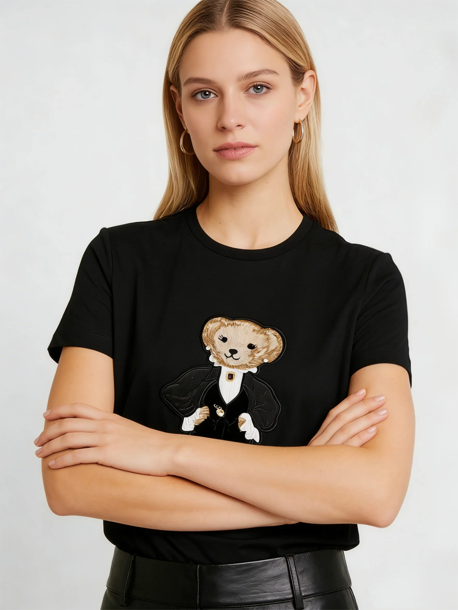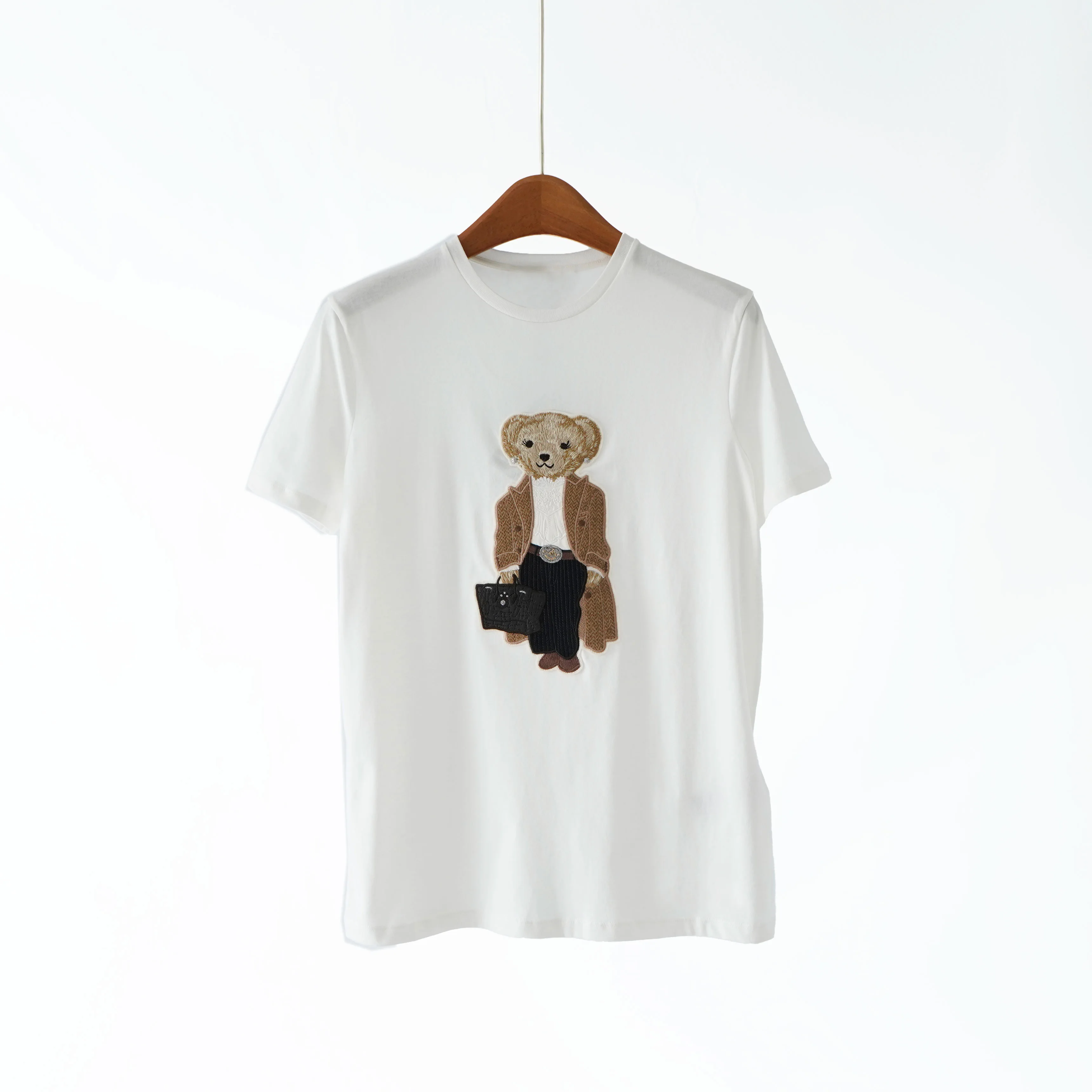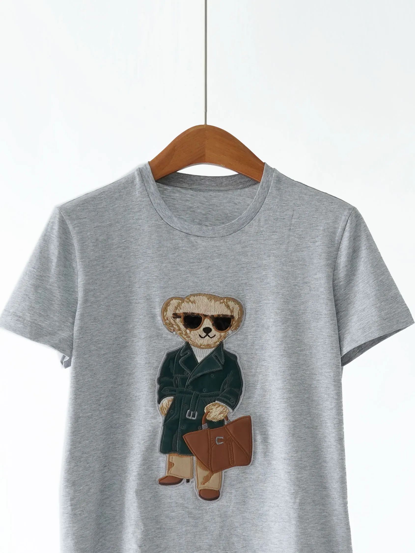 High Quality Short Sleeve Round Neck T-Shirt New Embroidered Cartoon Teddy Bear Print All Match 100 Cotton Top