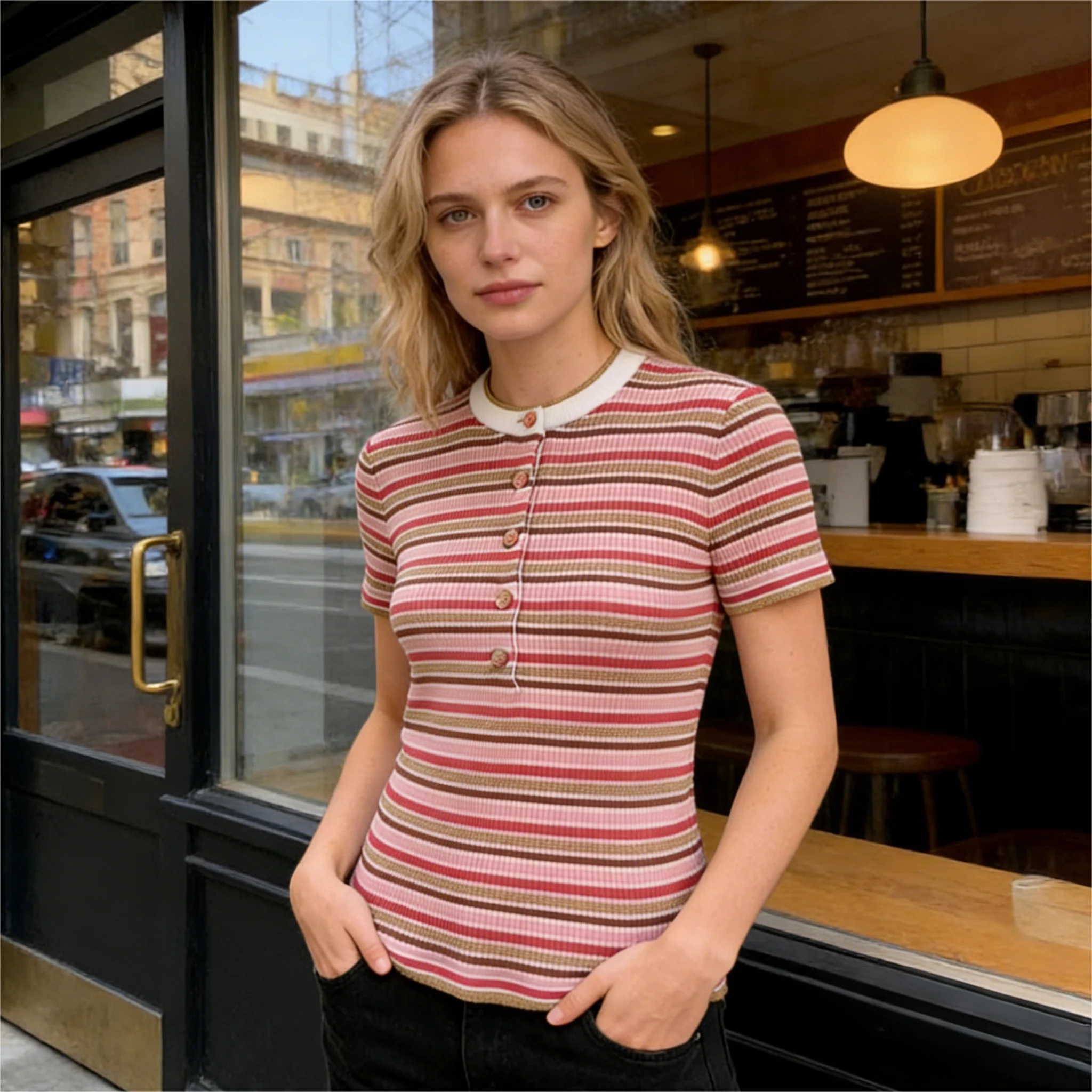 Women's Fast Dry Casual Button Golf for Polo Shirt Breathable Knitted Striped Design with Customized Logo