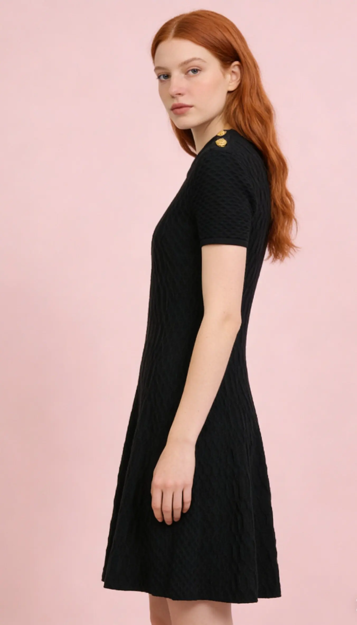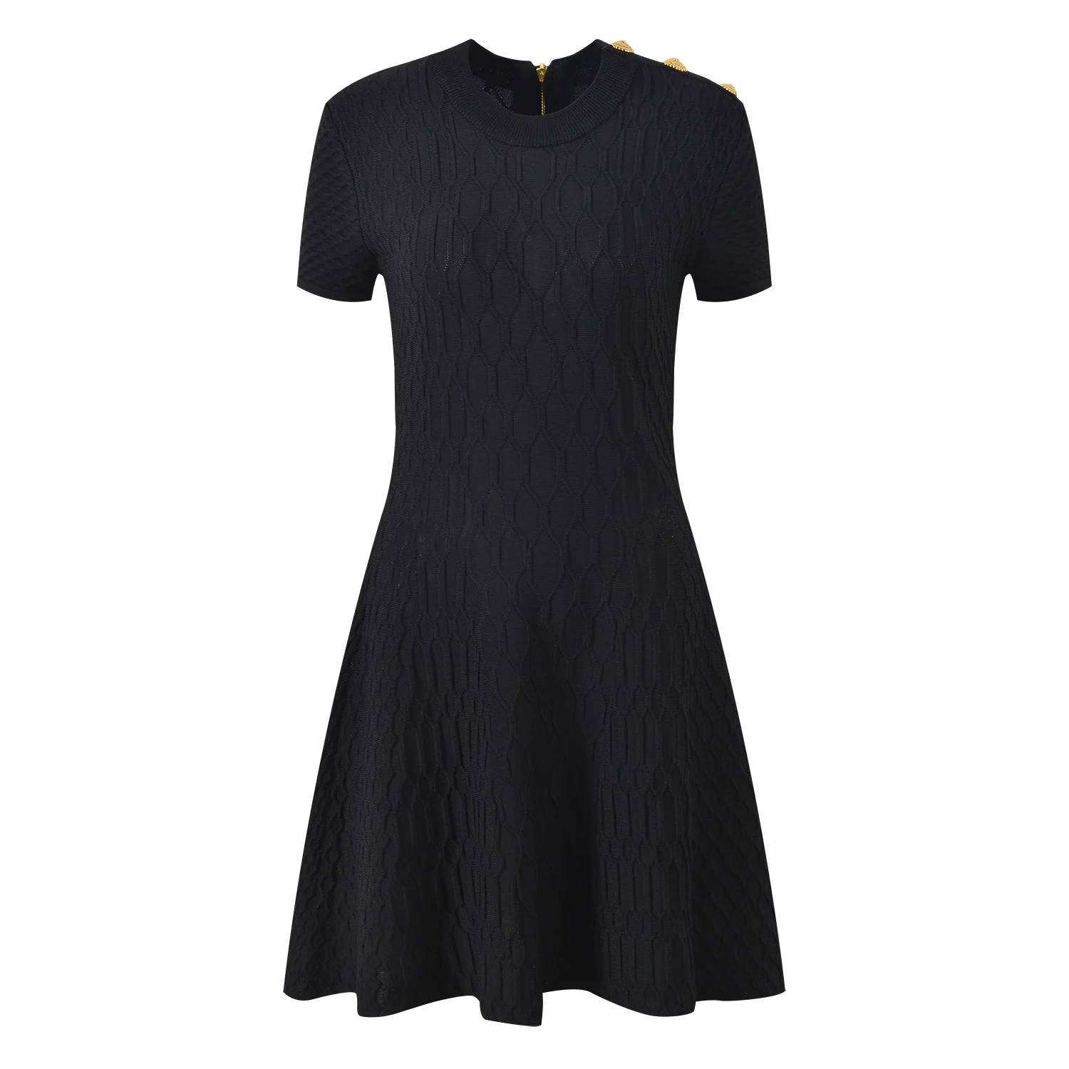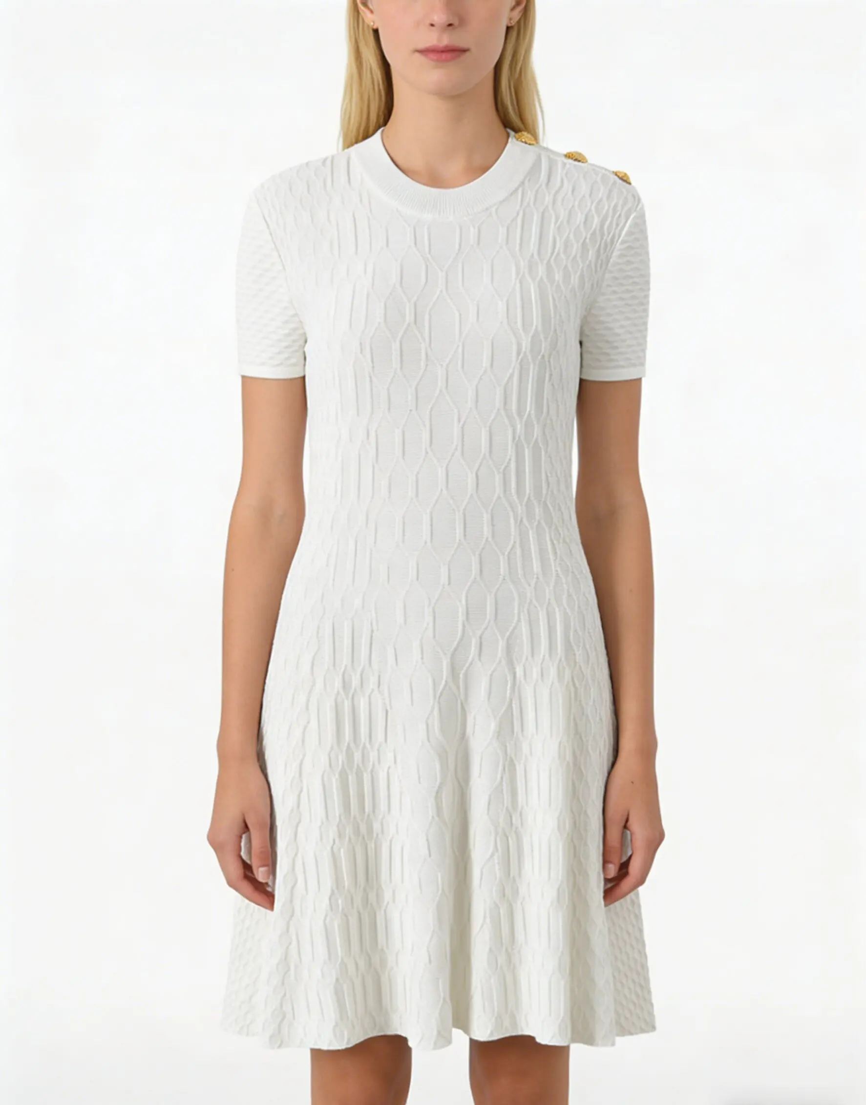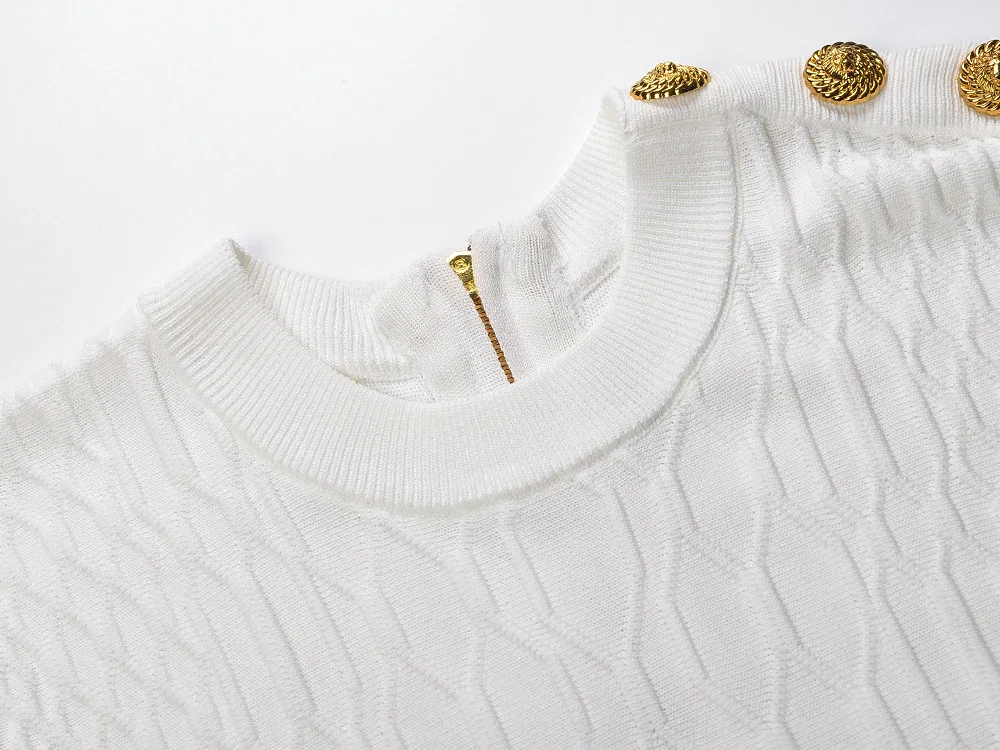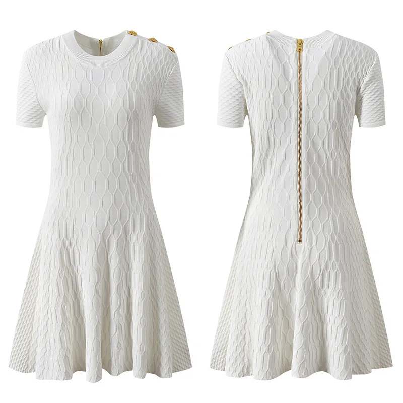 Autumn and Winter New French Style Light Luxury Metal Buckle White Jacquard Mesh Skirt Elegant Waisted Dress