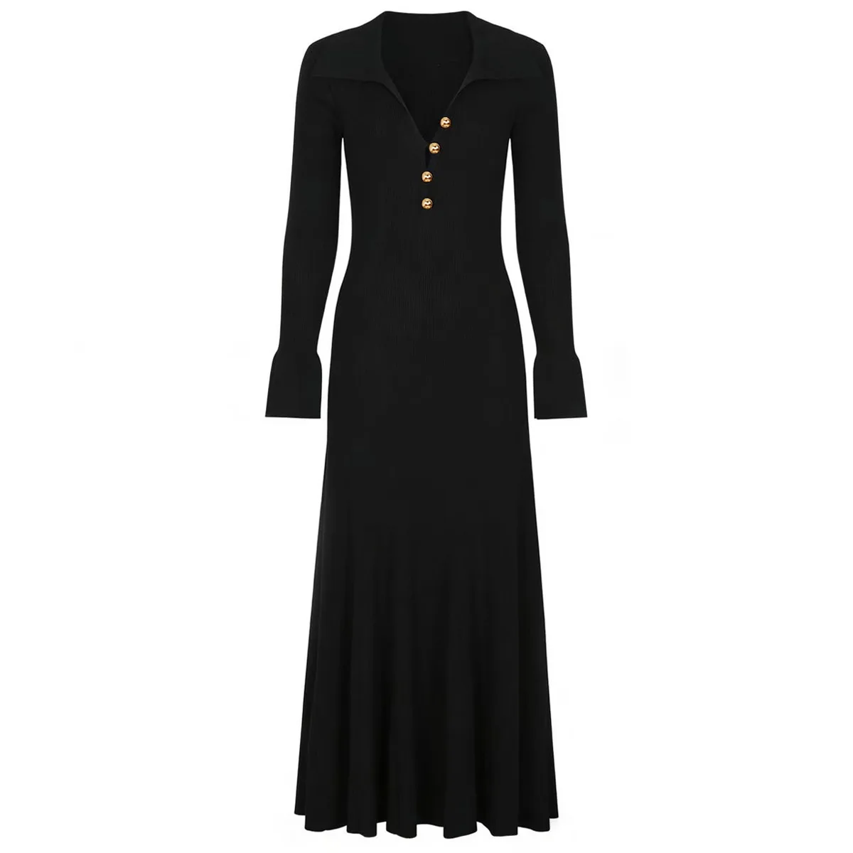 2026 Spring and Summer Elegant Style Women's Knitted Long-sleeved Single-breasted Lapel Women's Fashionable Maxi Long Dress