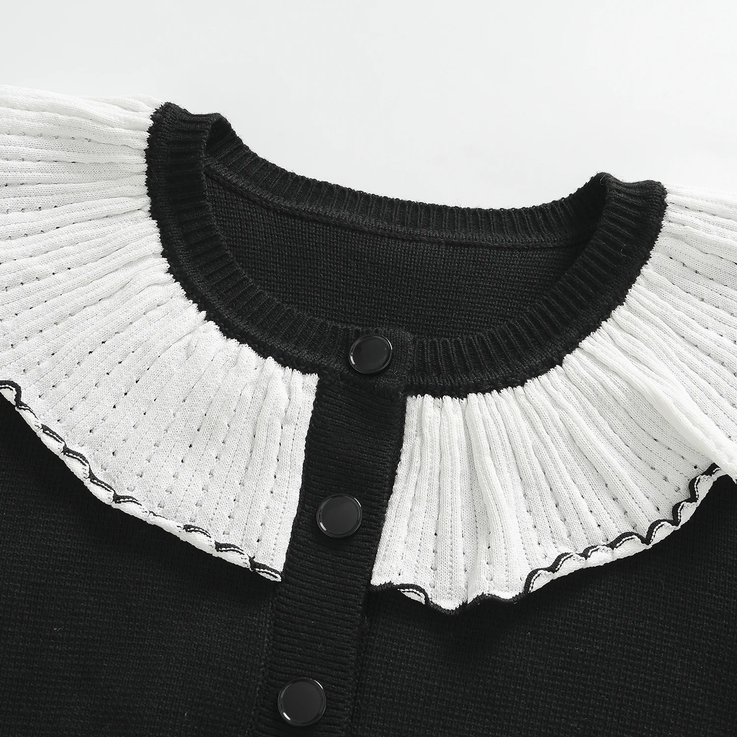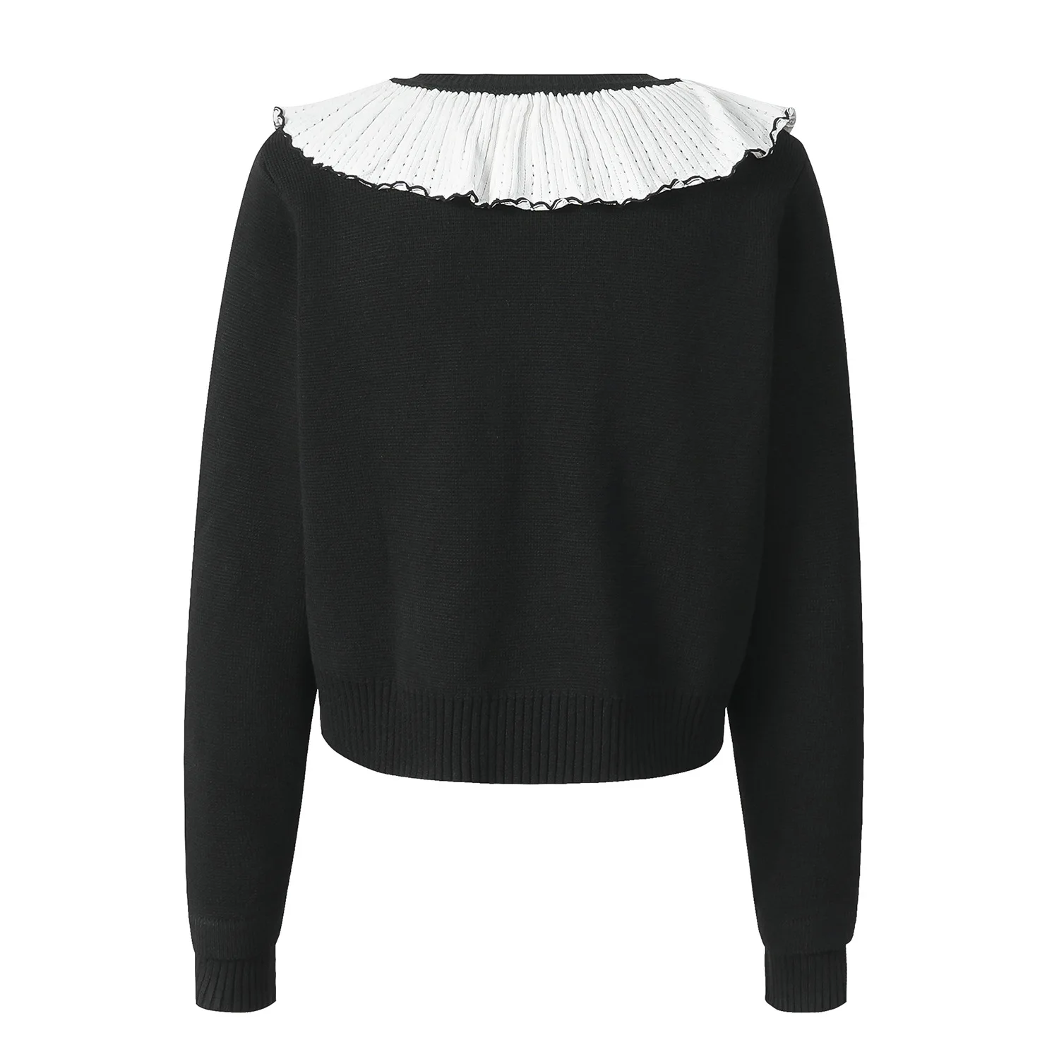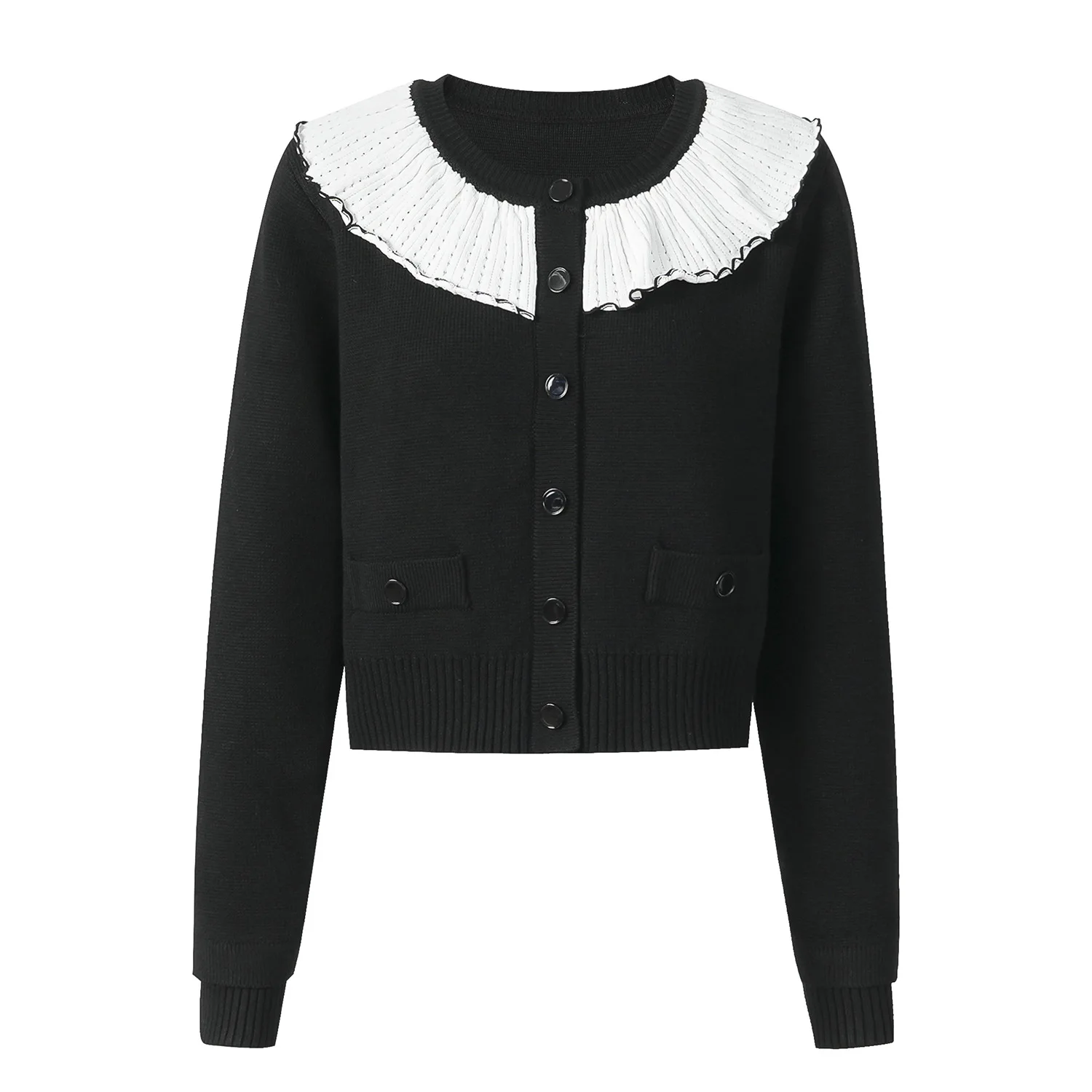 High Quality Autumn and Winter New Colored Lotus Collar Single-breasted Knitted Cardigan Atmosphere Short Coat Women