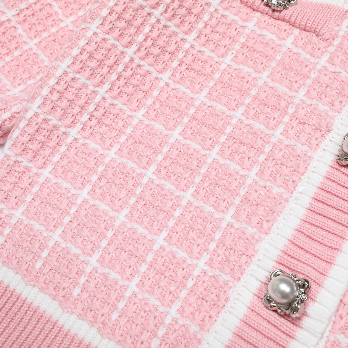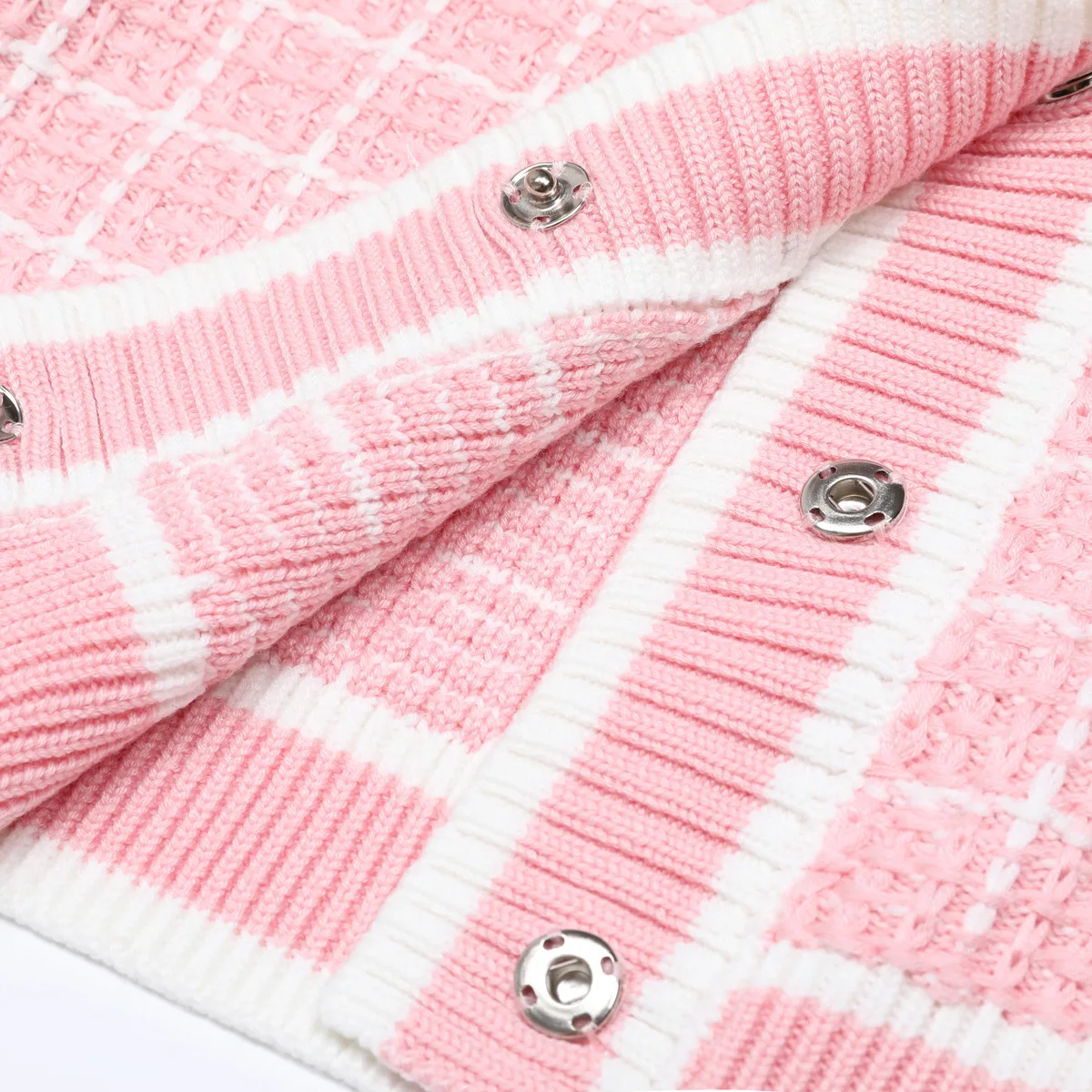 High Quality Office Casual Suit Round Neck Long Sleeve Single-breasted Plaid Knitted Cardigan Trousers Women's Two-piece Set