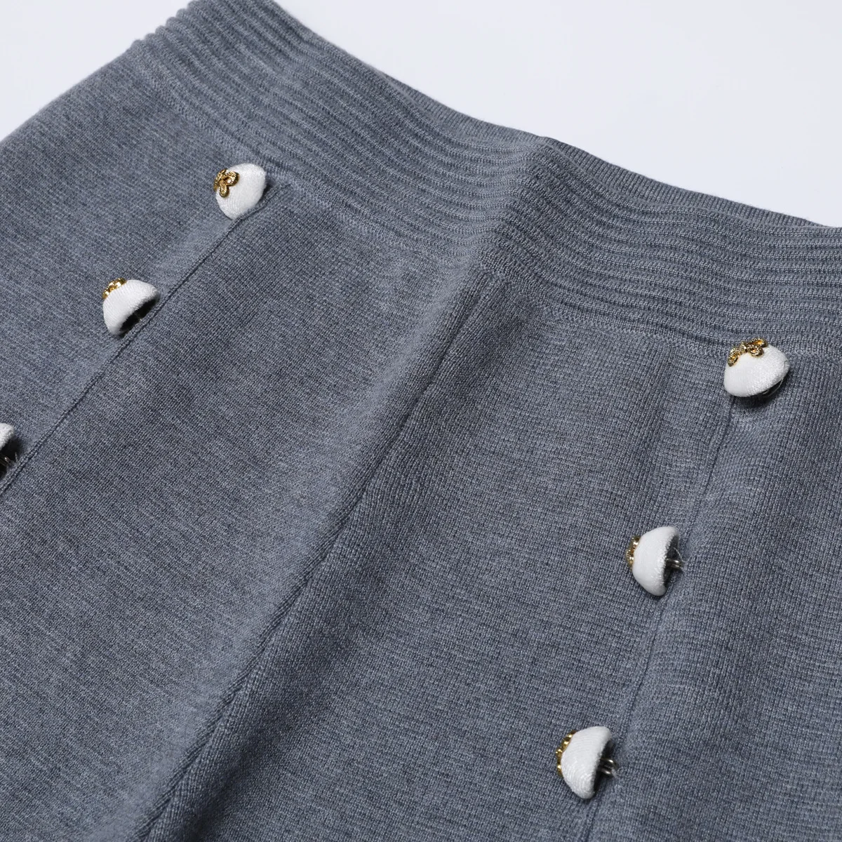 High Quality Office Casual Set Round Neck Long Sleeve Single-breasted Embroidered Knitted Cardigan Trousers Women Two-piece Set