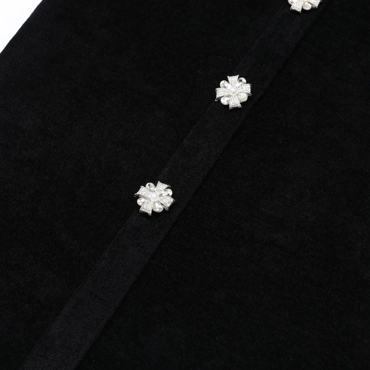 ZYHT 21938 Black Velvet Mini Dress Square Neck Long Puff Sleeves with Pearl Trim & Crystal Dess Flared Scalloped Hem Dresses