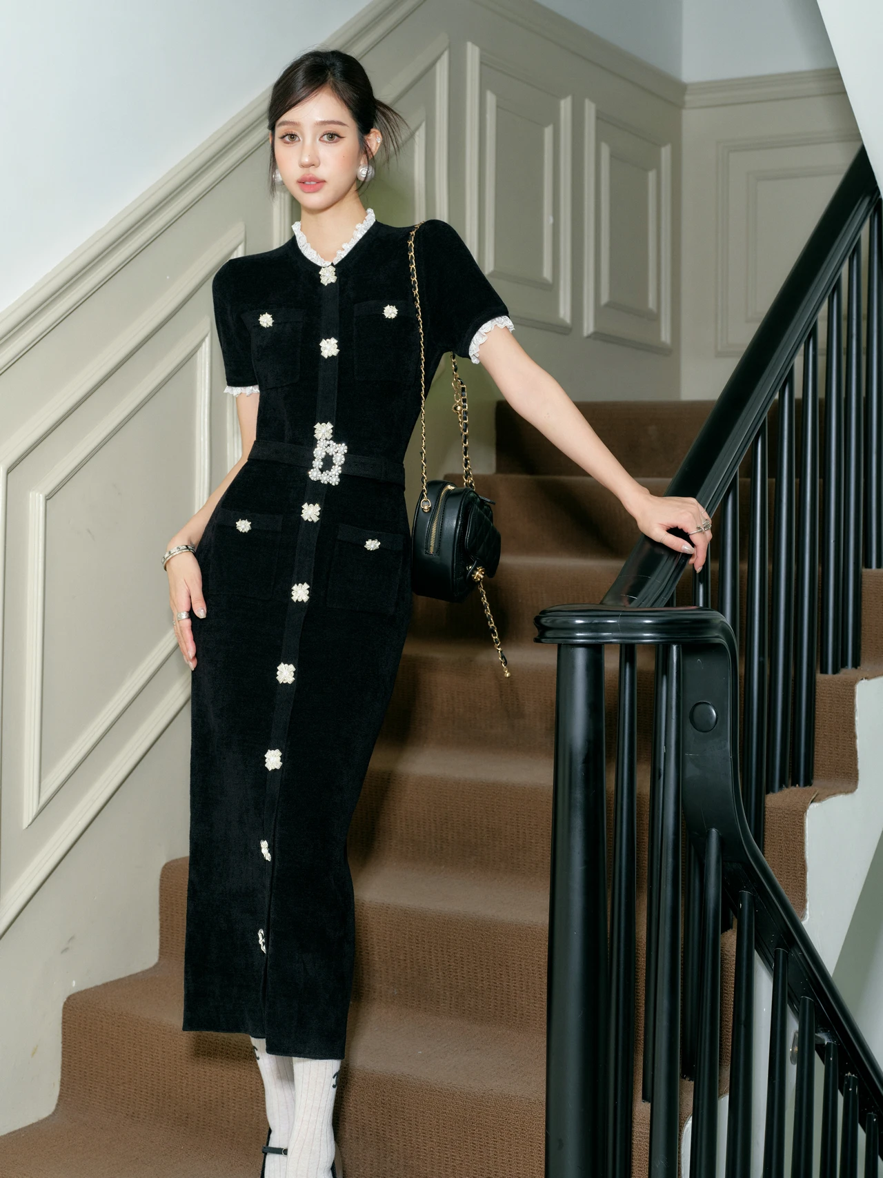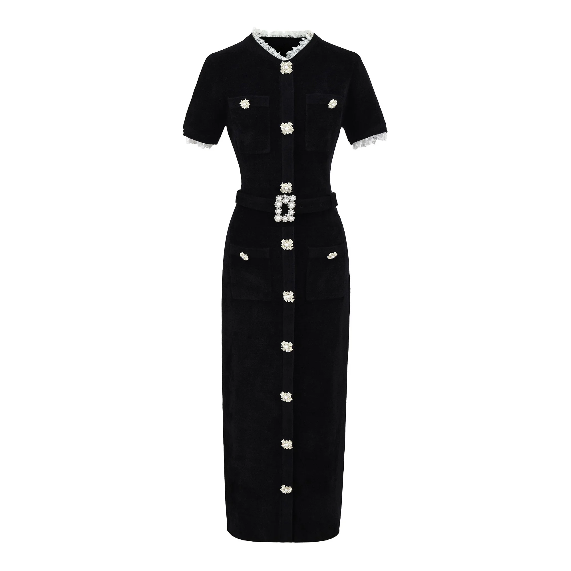 2026 A/W New Velvet Chenille Dress Heavy-duty Lace Patchwork Diamond Buckle Belt Evening Dress Clothing Manufacturers