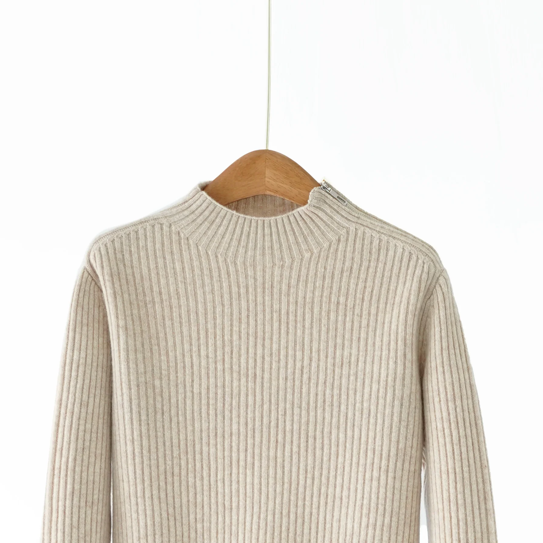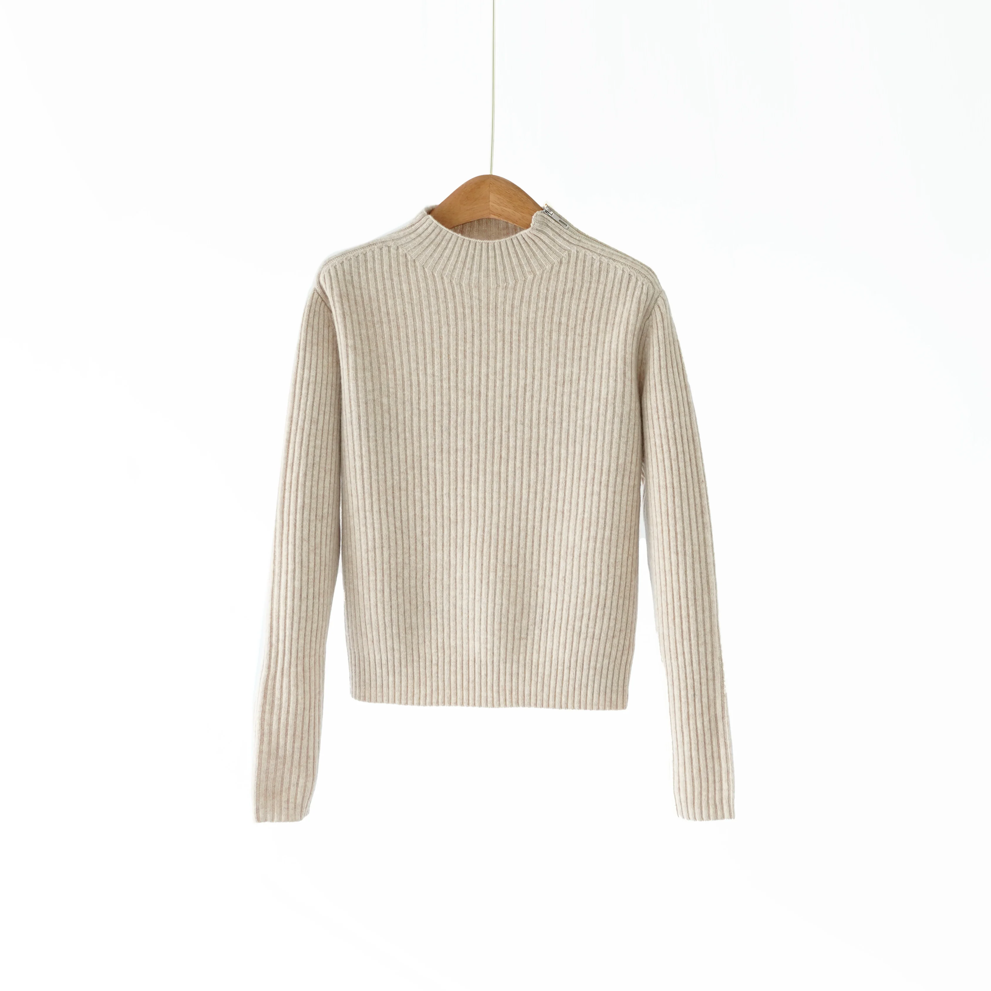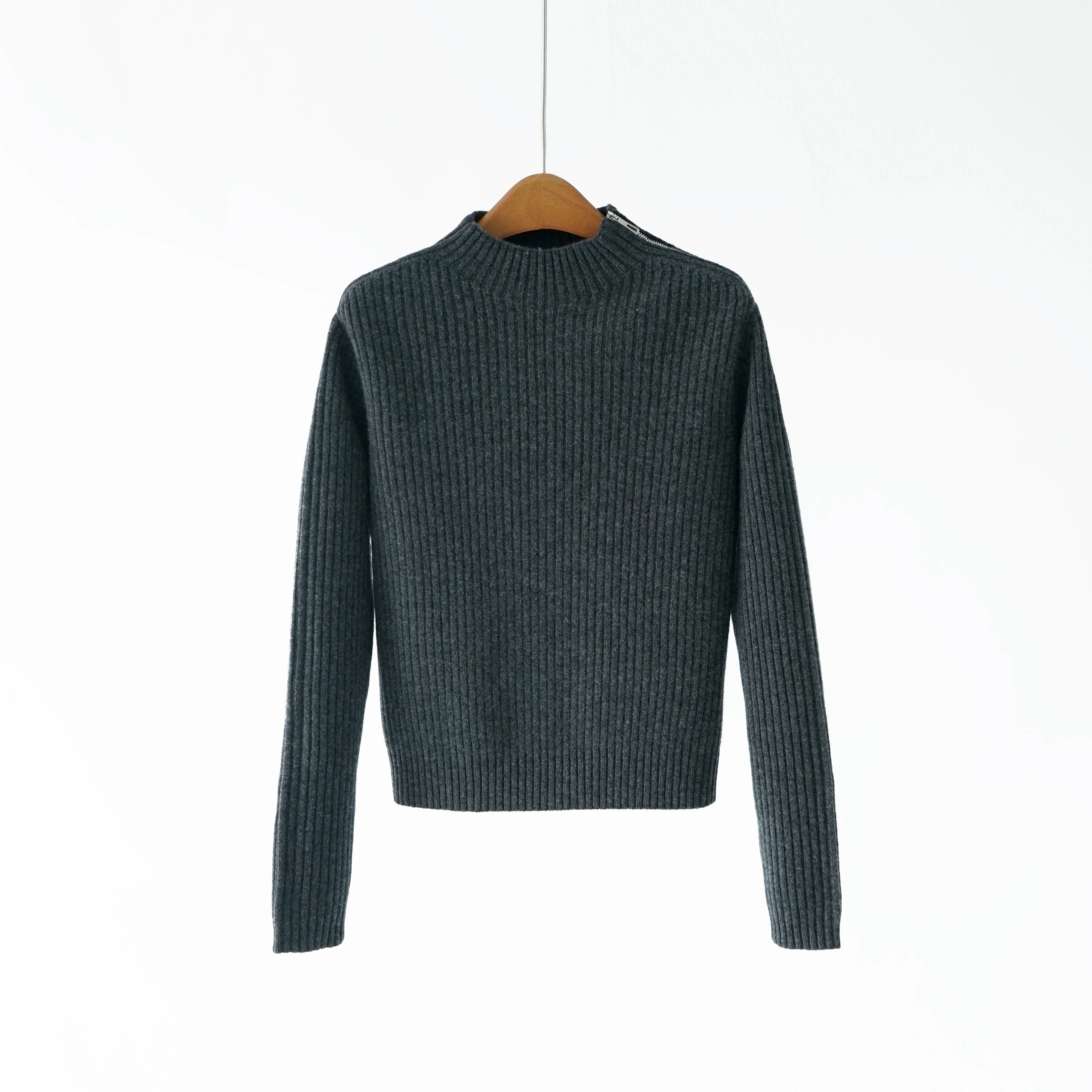 2026 Autumn and Winter New 100% Wool Design Shoulder Side Zipper Turtleneck Sweater for Women