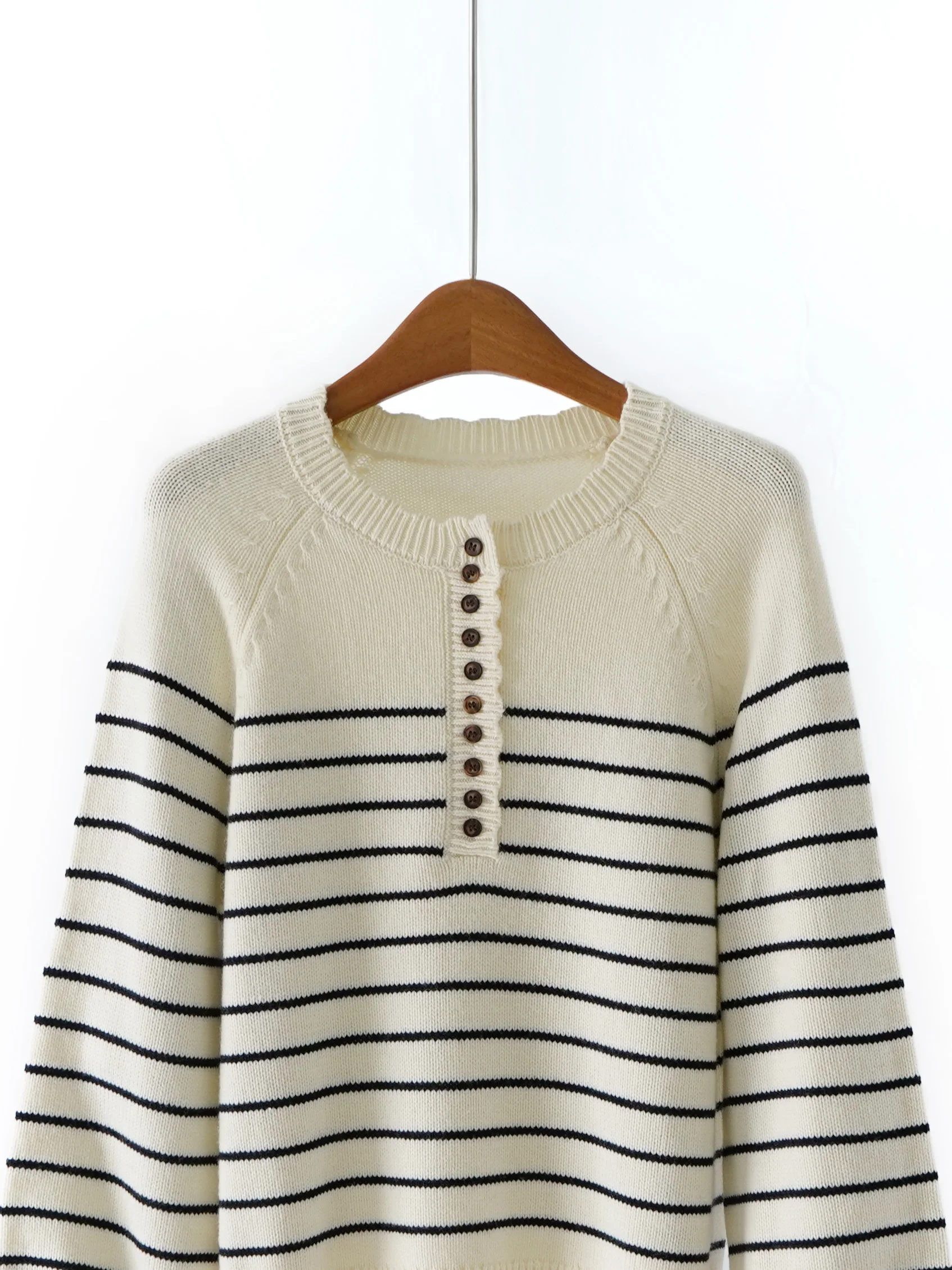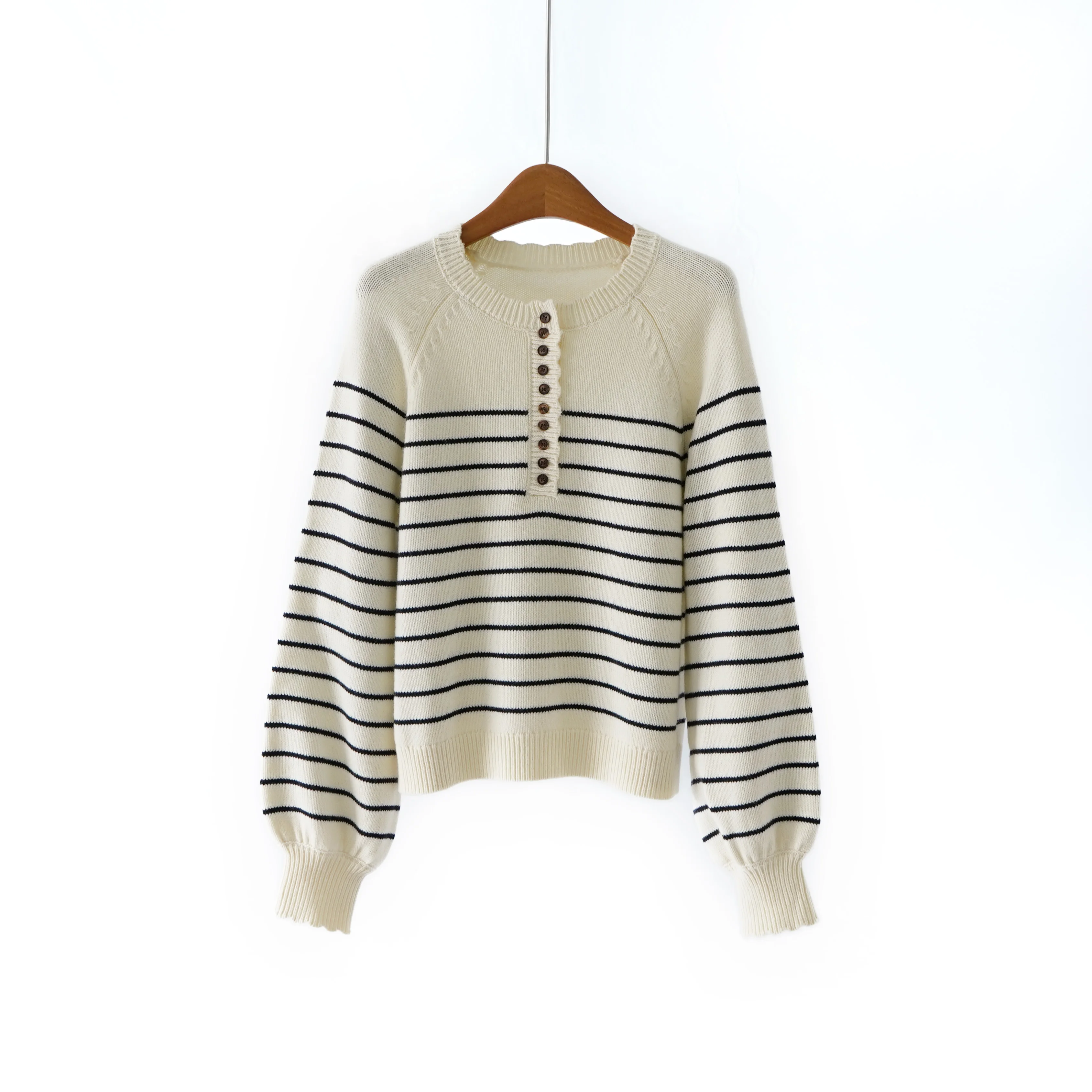 Autumn and Winter New Women's Henry Collar Knitwear Clothing Striped Sheep Wool Women's Pullover Sweater