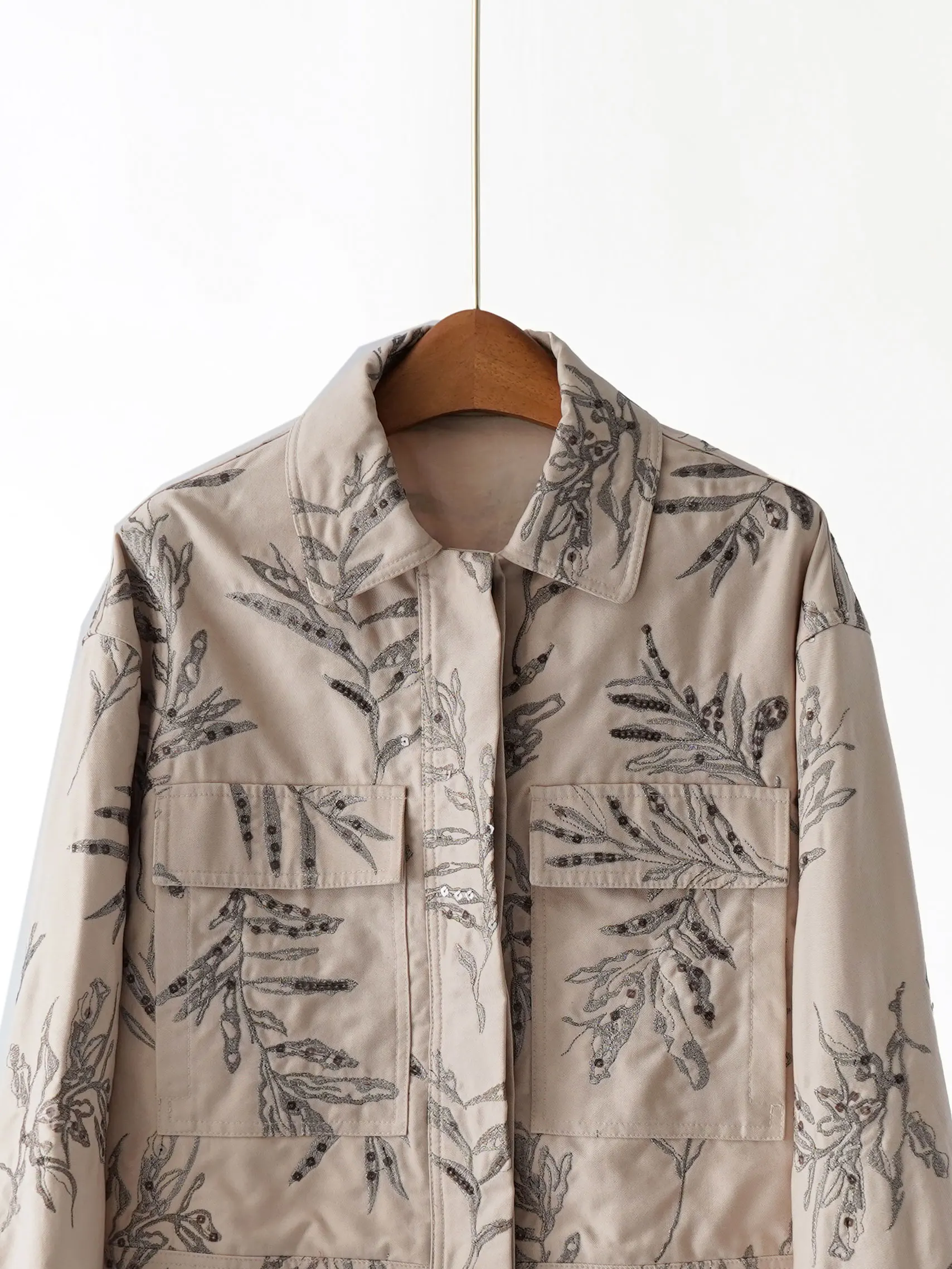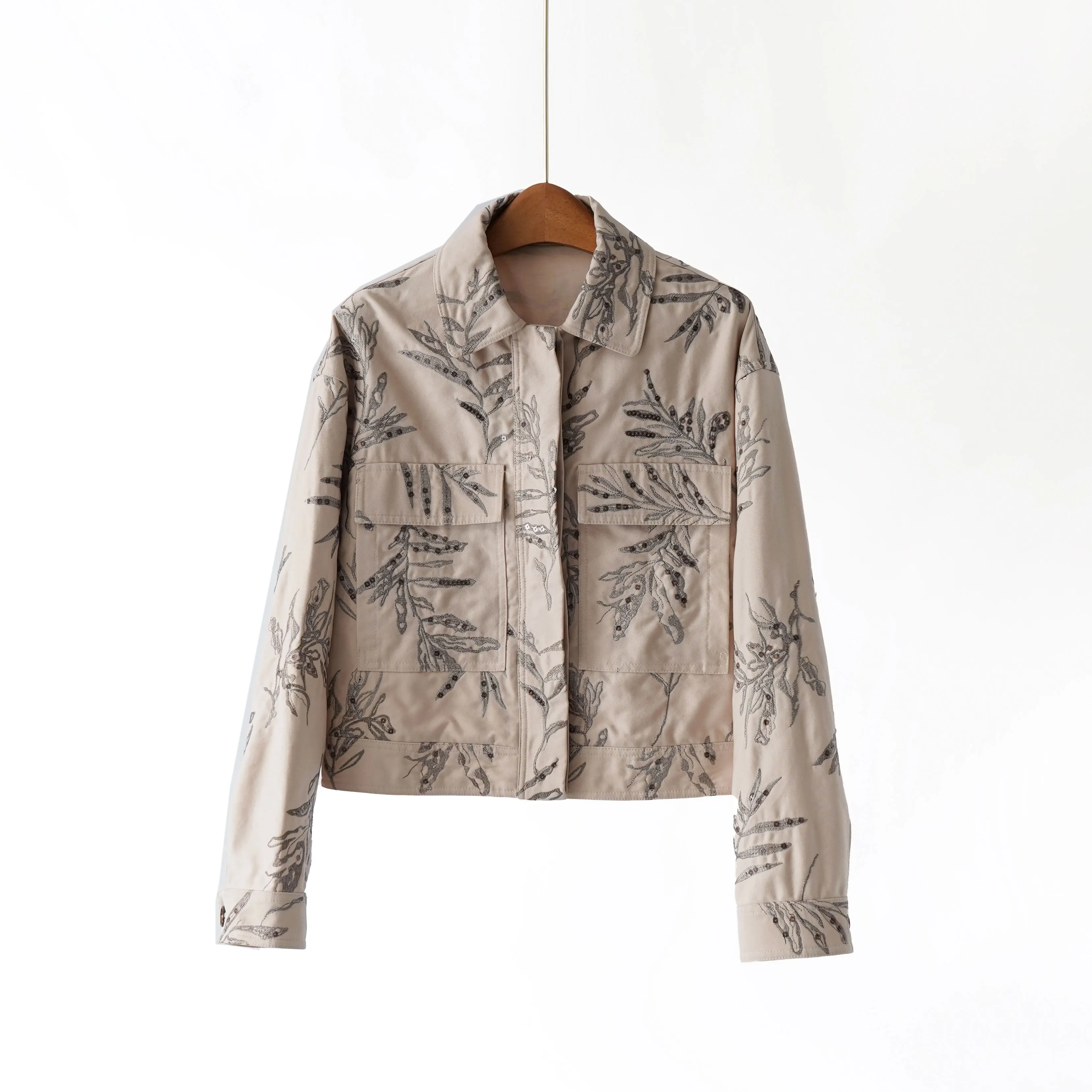 2026 A/W New Leaf Embroidered Jacket Elegant Commuter Delicate Lapel Short Jacket Clothing Manufacturers