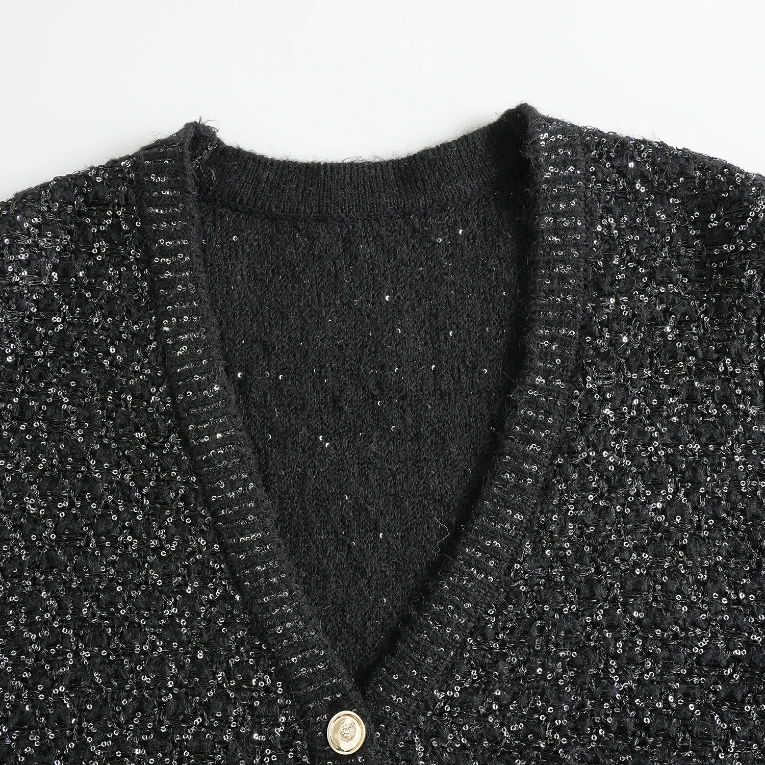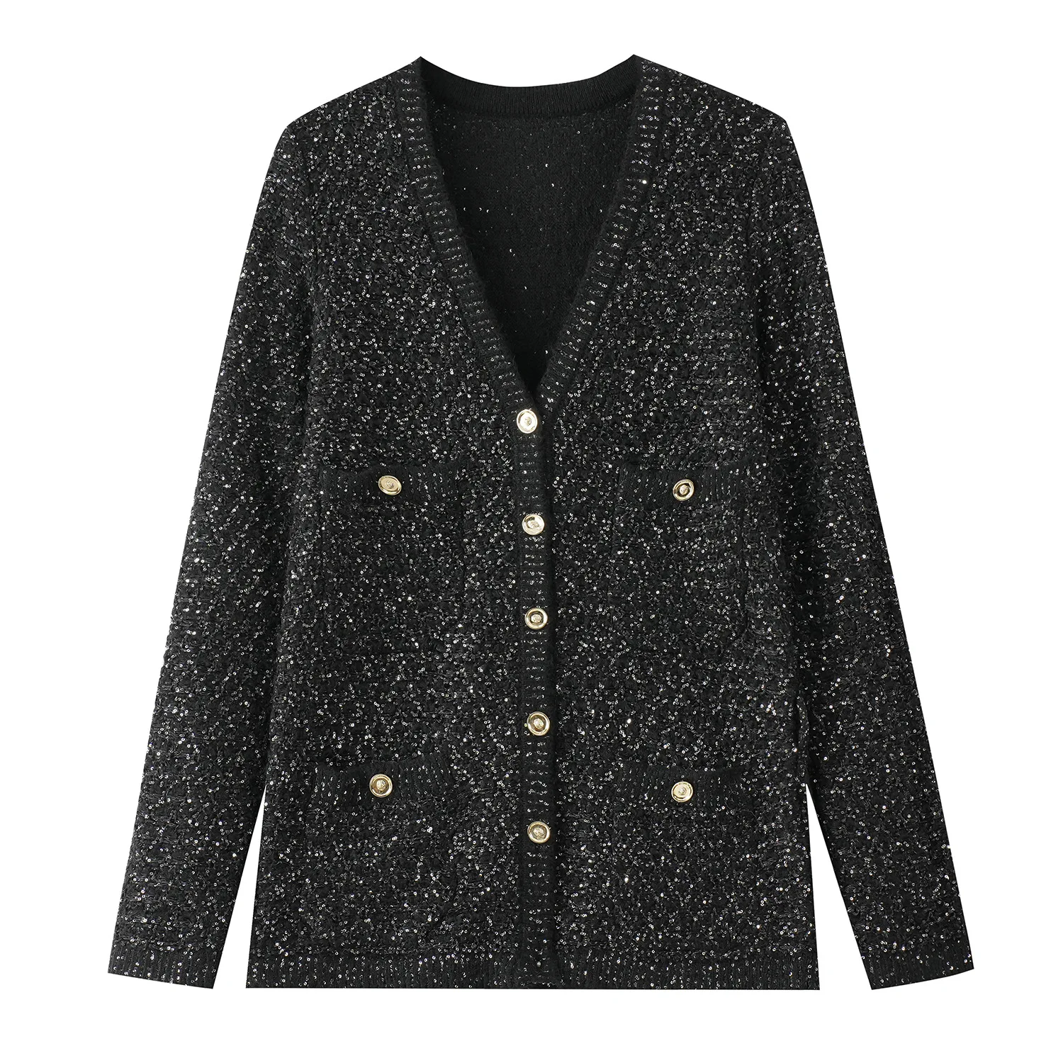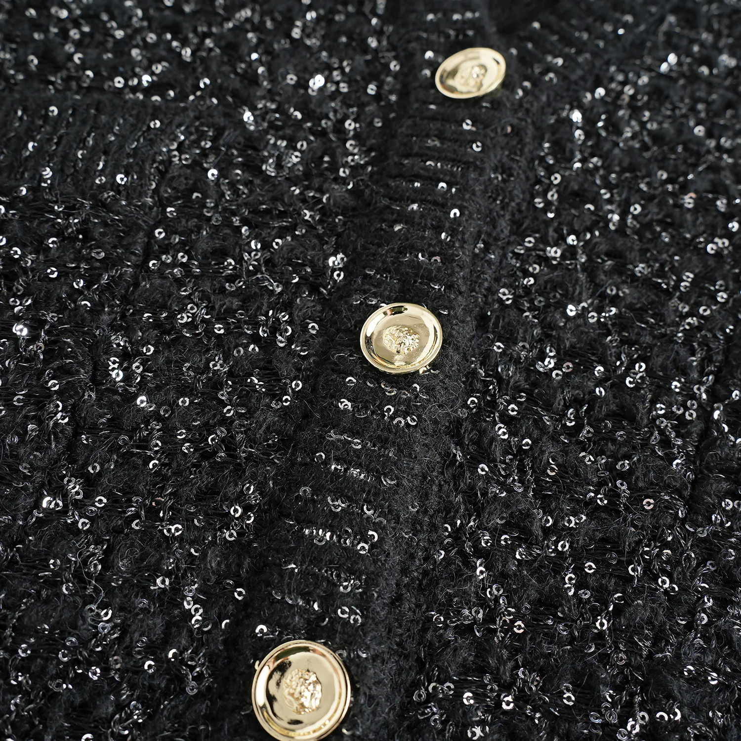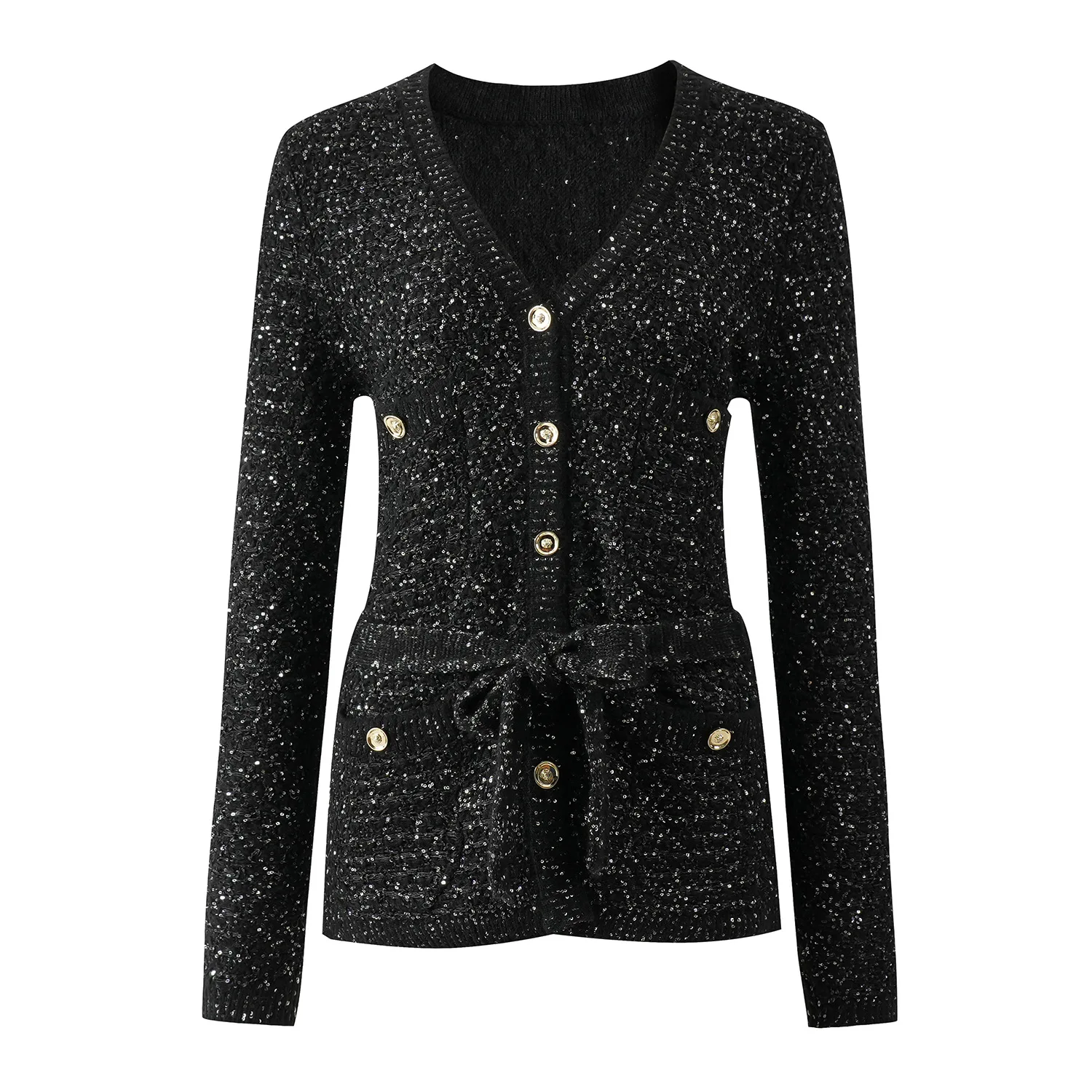 2026 Autumn and Winter French Socialite Style Cardigan Gold Silk Sequin Lace-up Design Long High-end Feeling Coat