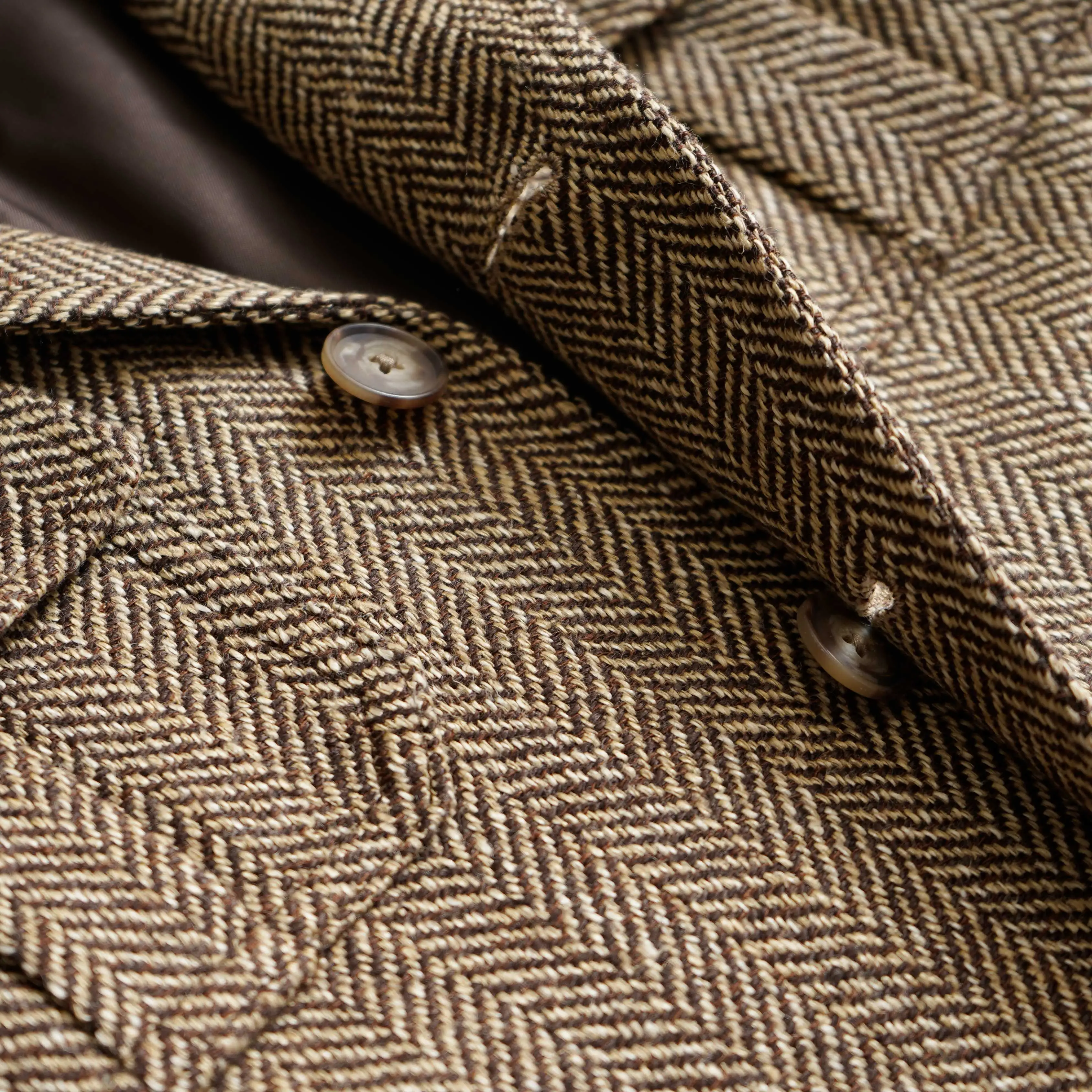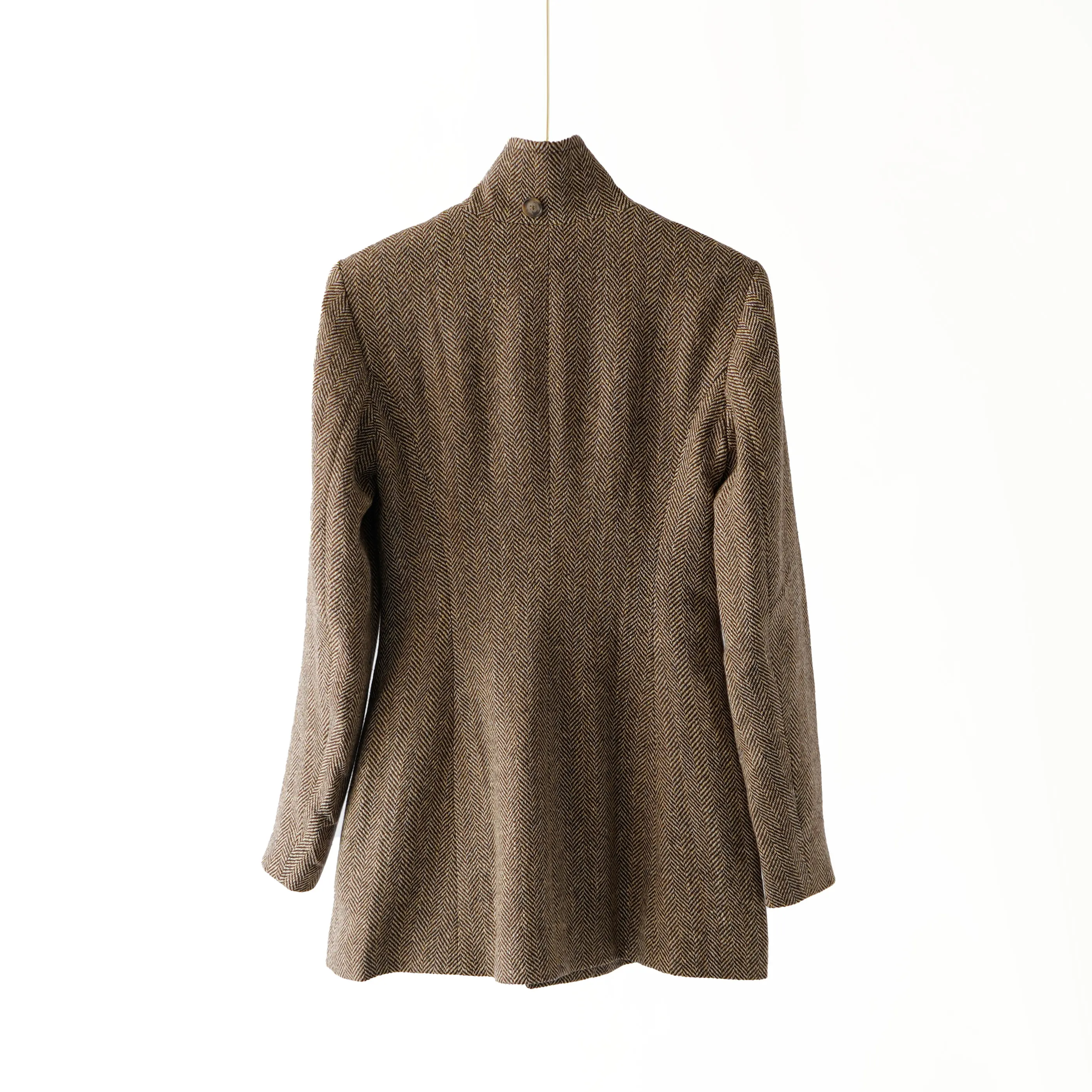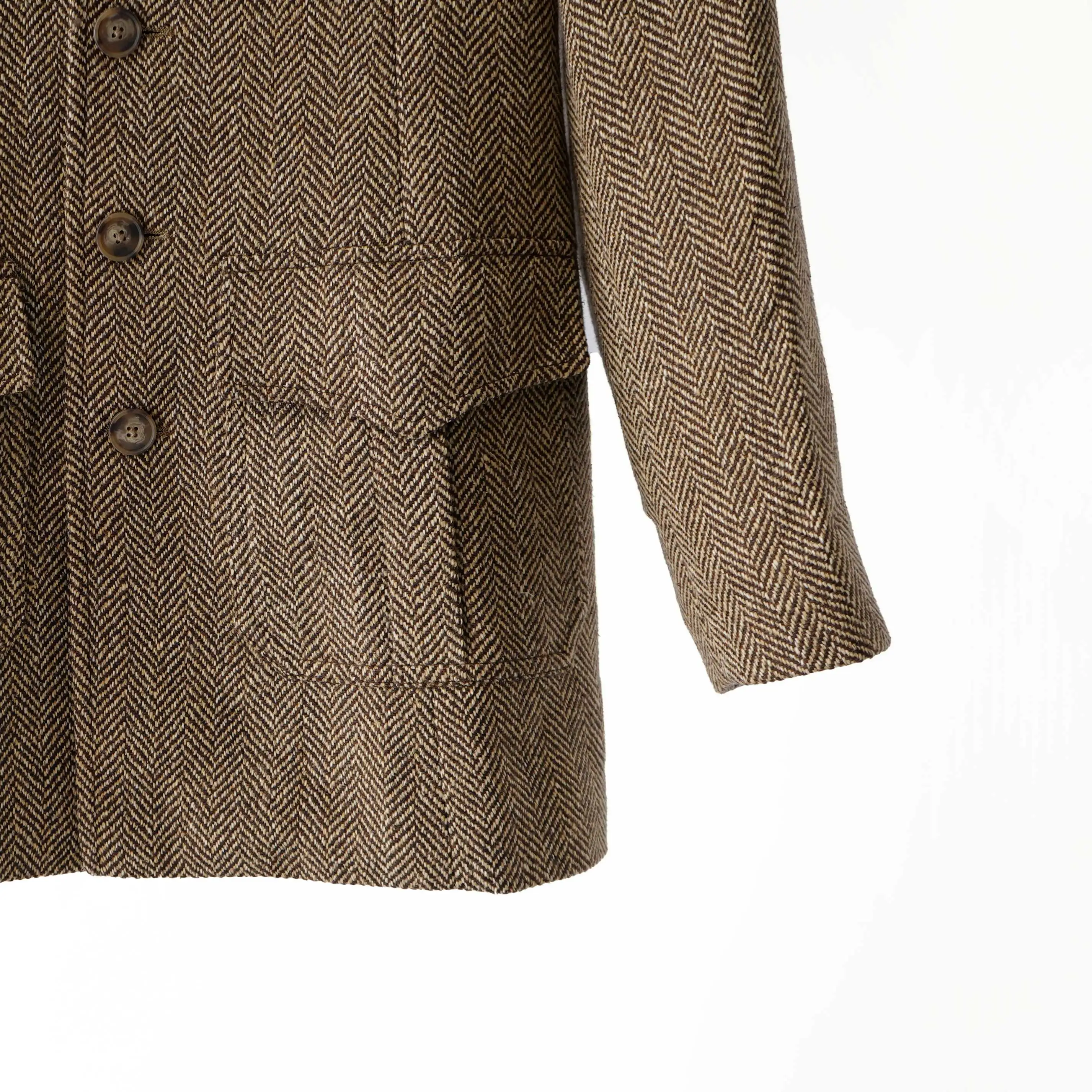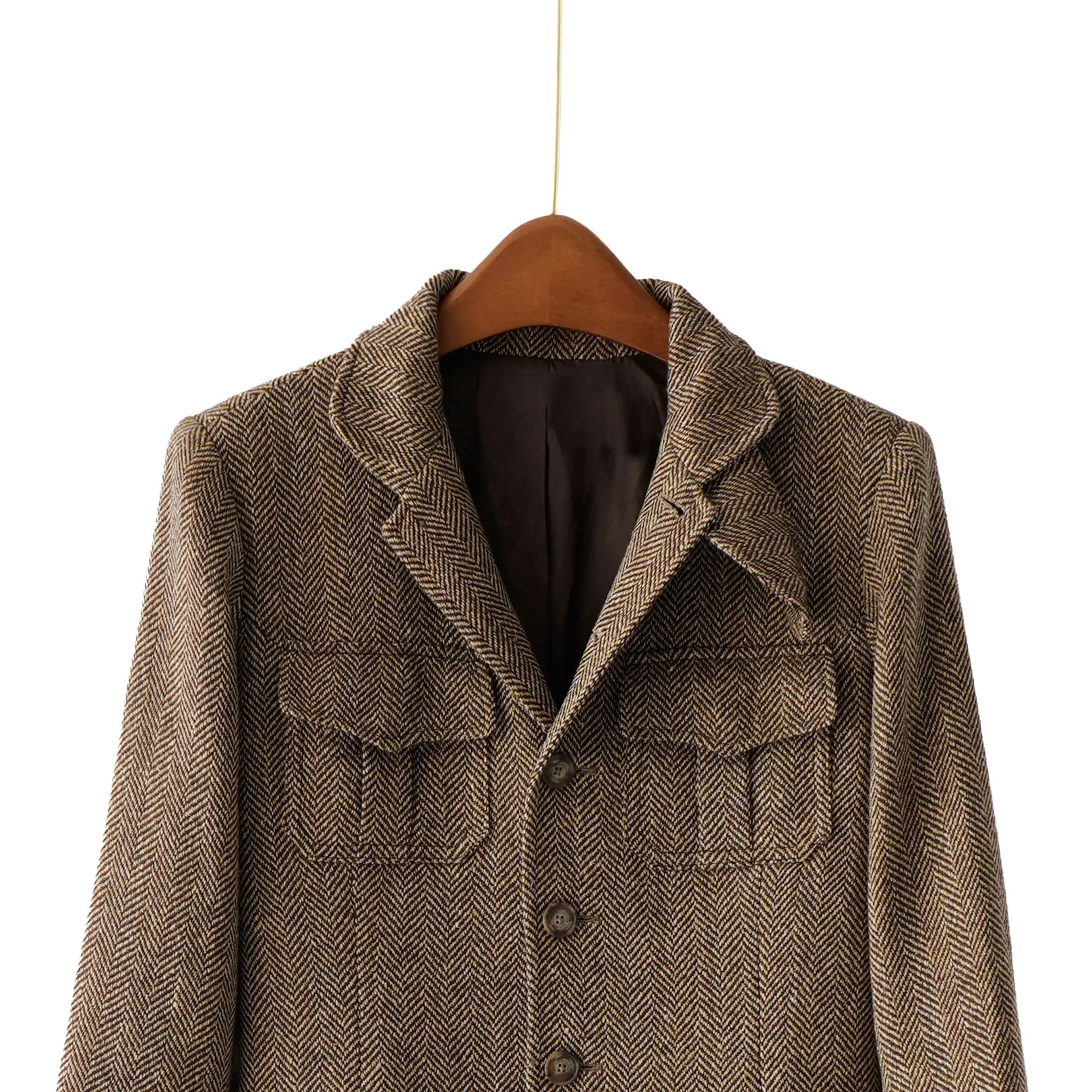 2026 A/W New Wool Mulberry Silk Jacket Herringbone Pattern Vintage Tooling Style Multi-functional Pocket Jacket