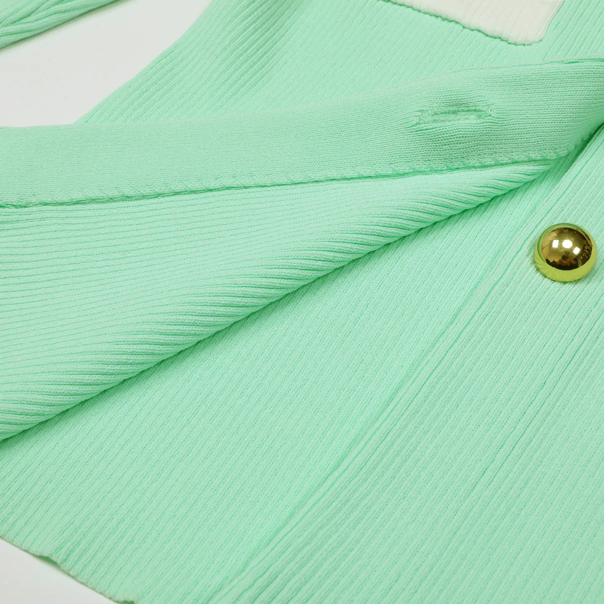 ZYHT 15545 Women's Blouses & Shirts Mint Green Tweed Blazer with Puff Sleeves & Peplum Fit Button-Detail Long Sleeve Jacket