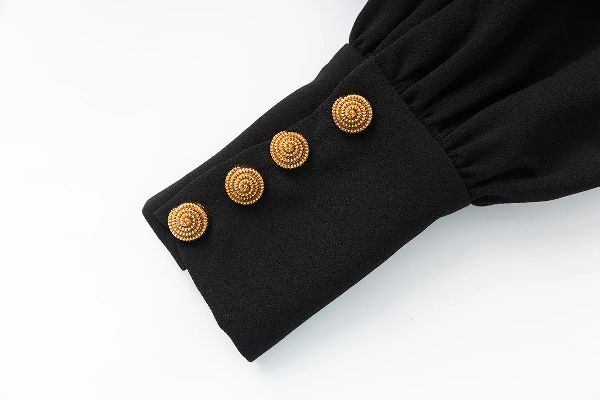 ZYHT 21938 Black Velvet Mini Dress Square Neck Long Puff Sleeves with Pearl Trim & Crystal Dess Flared Scalloped Hem Dresses