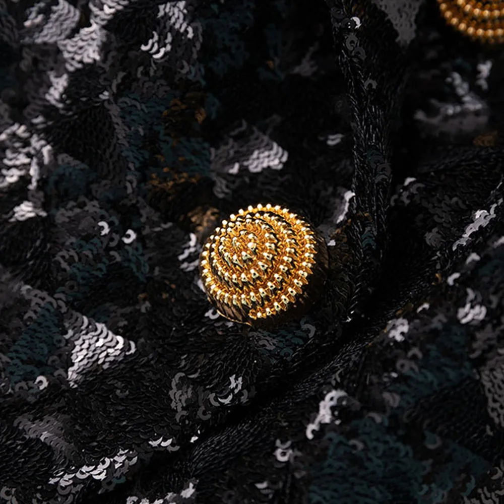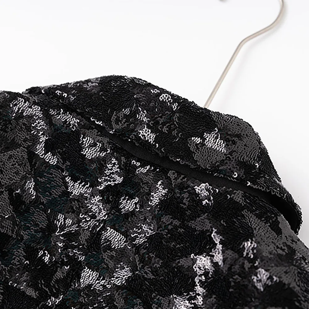 Autumn 2026 New Heavy Industry Bead Pieces Stitching Mesh Shrug Sleeve Jacket Metal Buckle Design Temperament Women's Suit