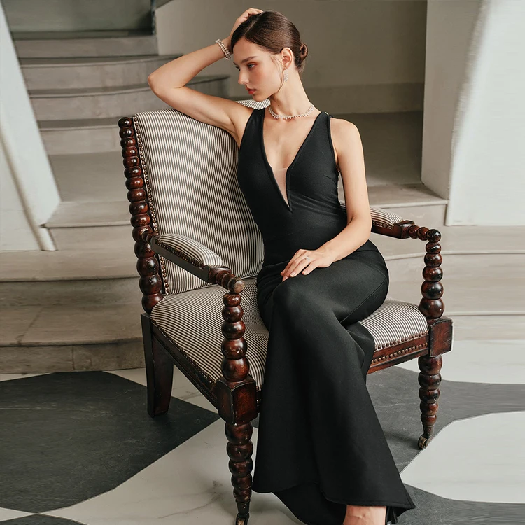 ZYHT 73902 Dark Green Blue Long Sleeve Simple Elegant Evening Dress Customize High End Women Clothing Manufacturer