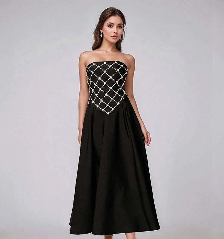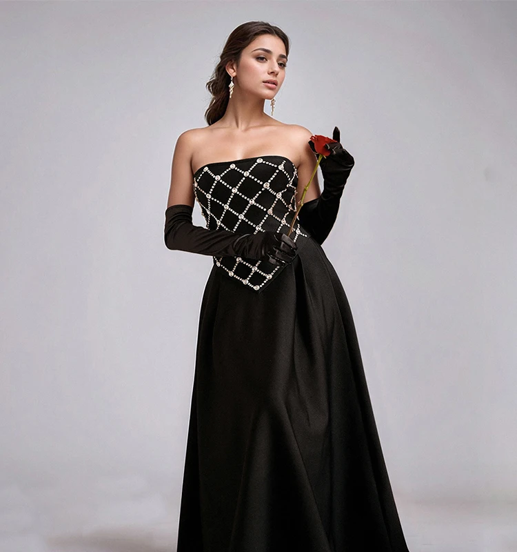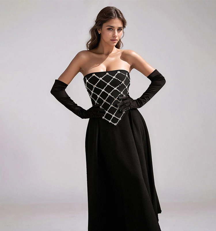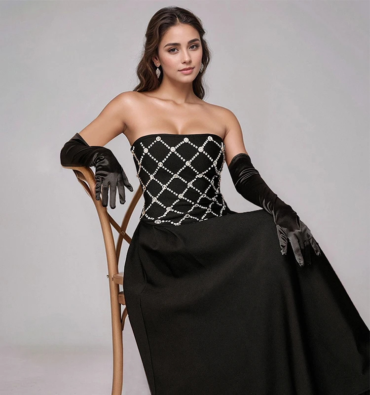 Women's Luxury Black Bandage Dress with Rhinestone Mesh Design for Evening Party Prom Cocktail Occasions