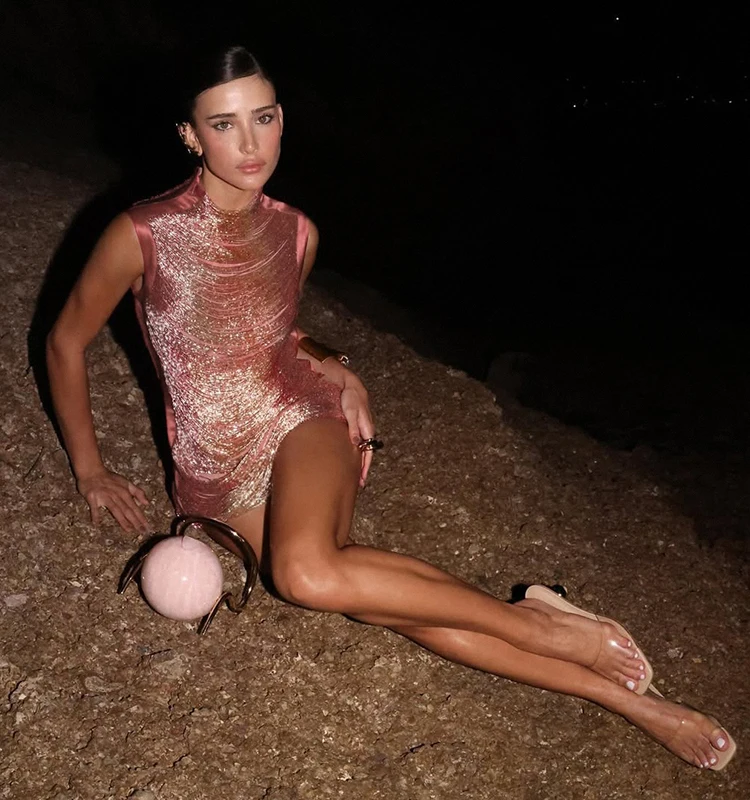 Sexy and Elegant Sparkly Pink Women's Bandage Bodycon Mini Dress With Tassel