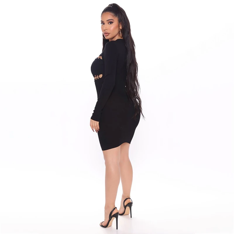 L2953 Latest Designs Tight Mini Black Long Sleeve Cocktail Party Bandage Prom Dresses 2023 Sexy
