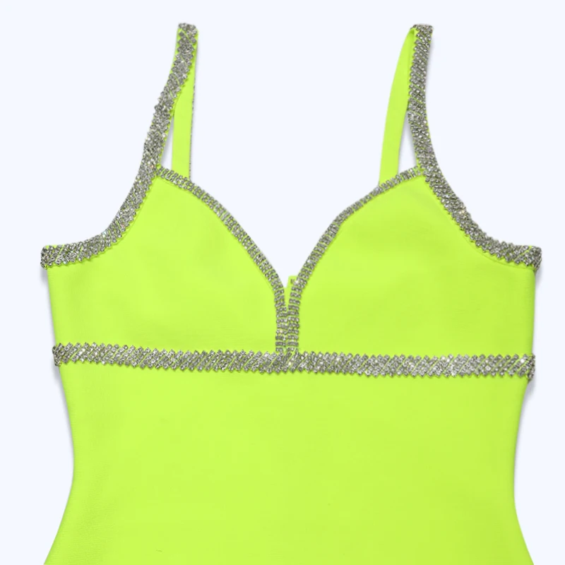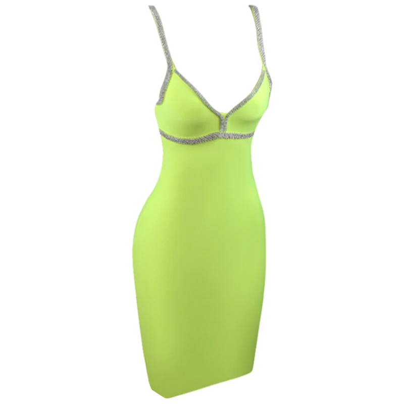 High End v Neck Spaghetti Strap Crystal Rhinestone Evening Dresses with Stone