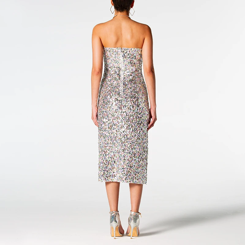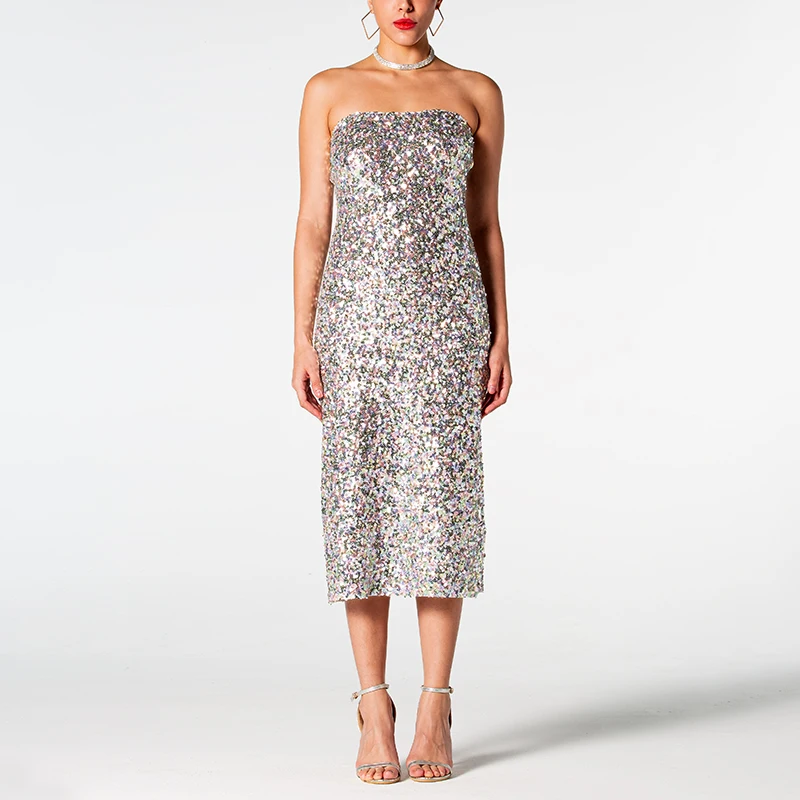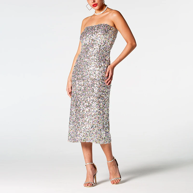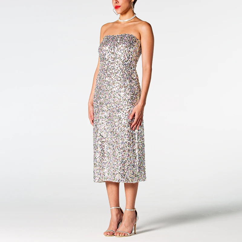 Zhuofei 2026 Luxury Sequins Strapless Dress Evening Formal Silver Dresses for Women Elegant