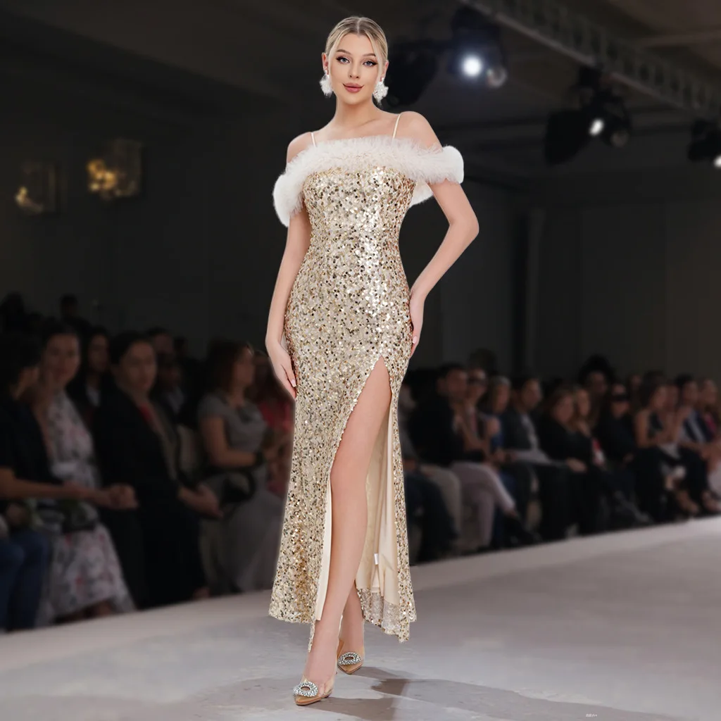 Clothing Manufacturer New Women's Fashion Tank Top Sequin Split Elegant Dress Women's Evening Gown