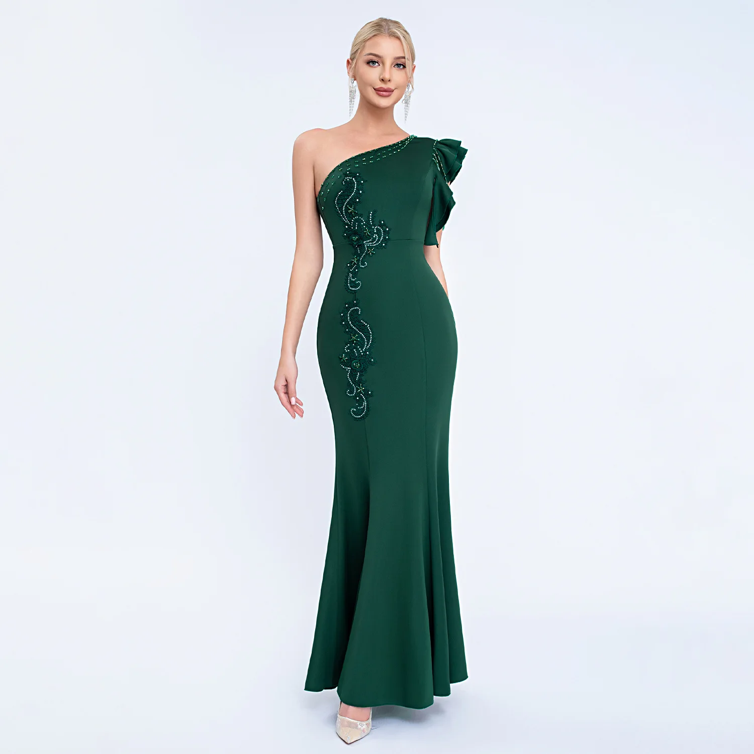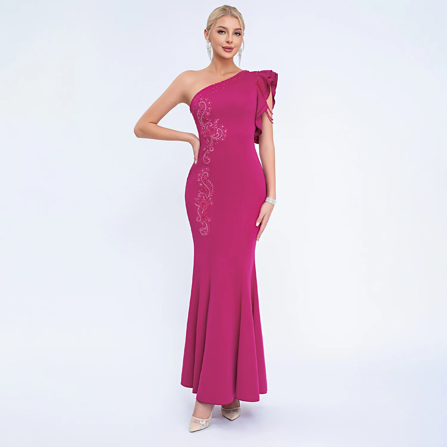 Custom Manufacturer Women's One-Shoulder Slouchy Evening Gown Elegant Women's Dress Women's Party Wear
