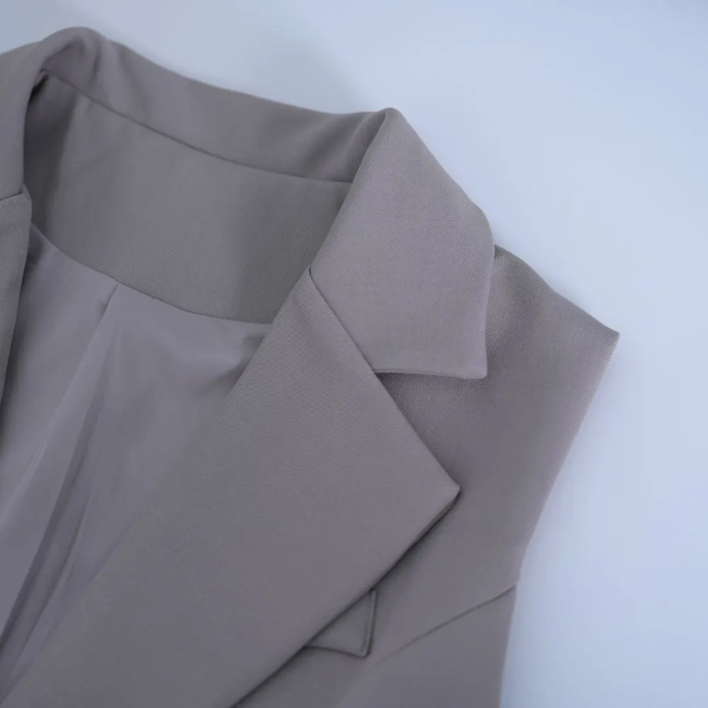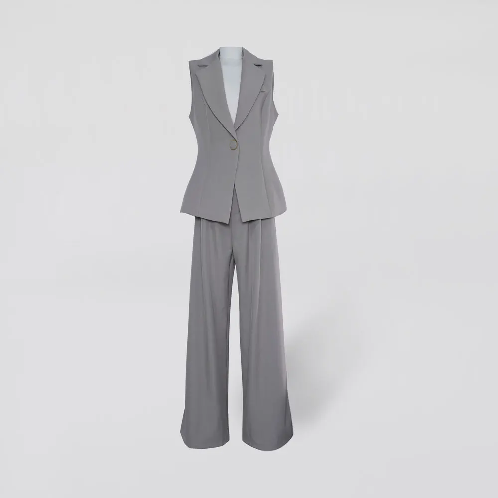 New Arrival Stylish Gray Sleeveless Suit Set for Women with Wide-Leg Pants