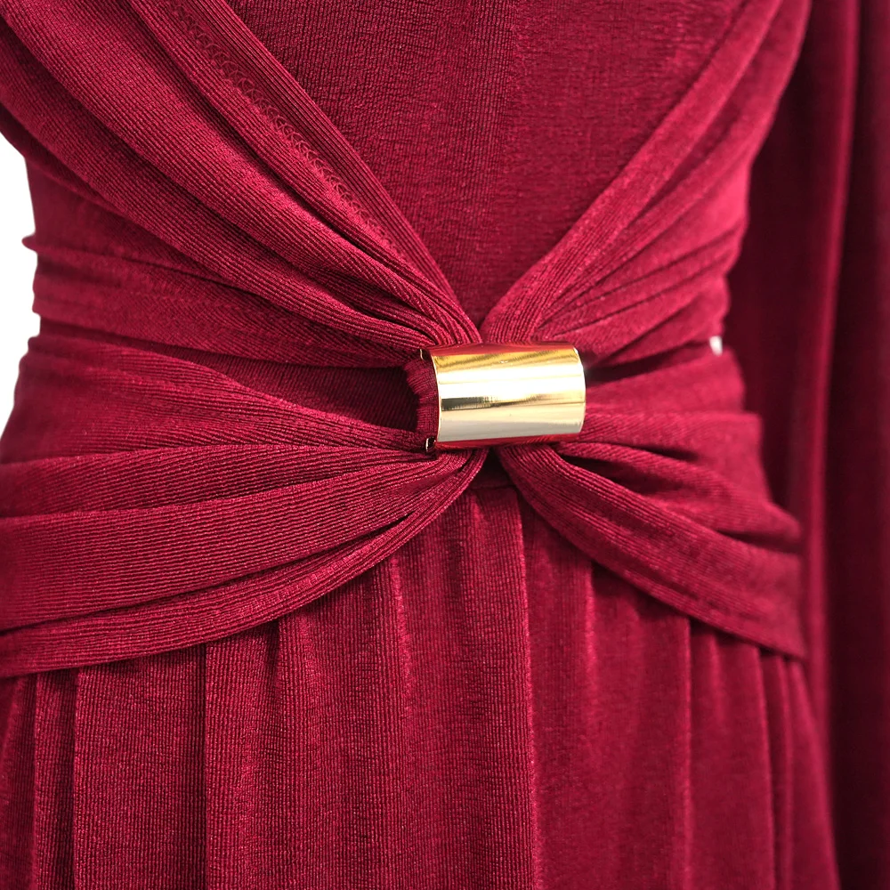ZYHT 73849 European Wholesale Fashion Casual One Shoulder Ruched Maxi Dress Side Slit Pleated Long Sleeve Dresses for Women