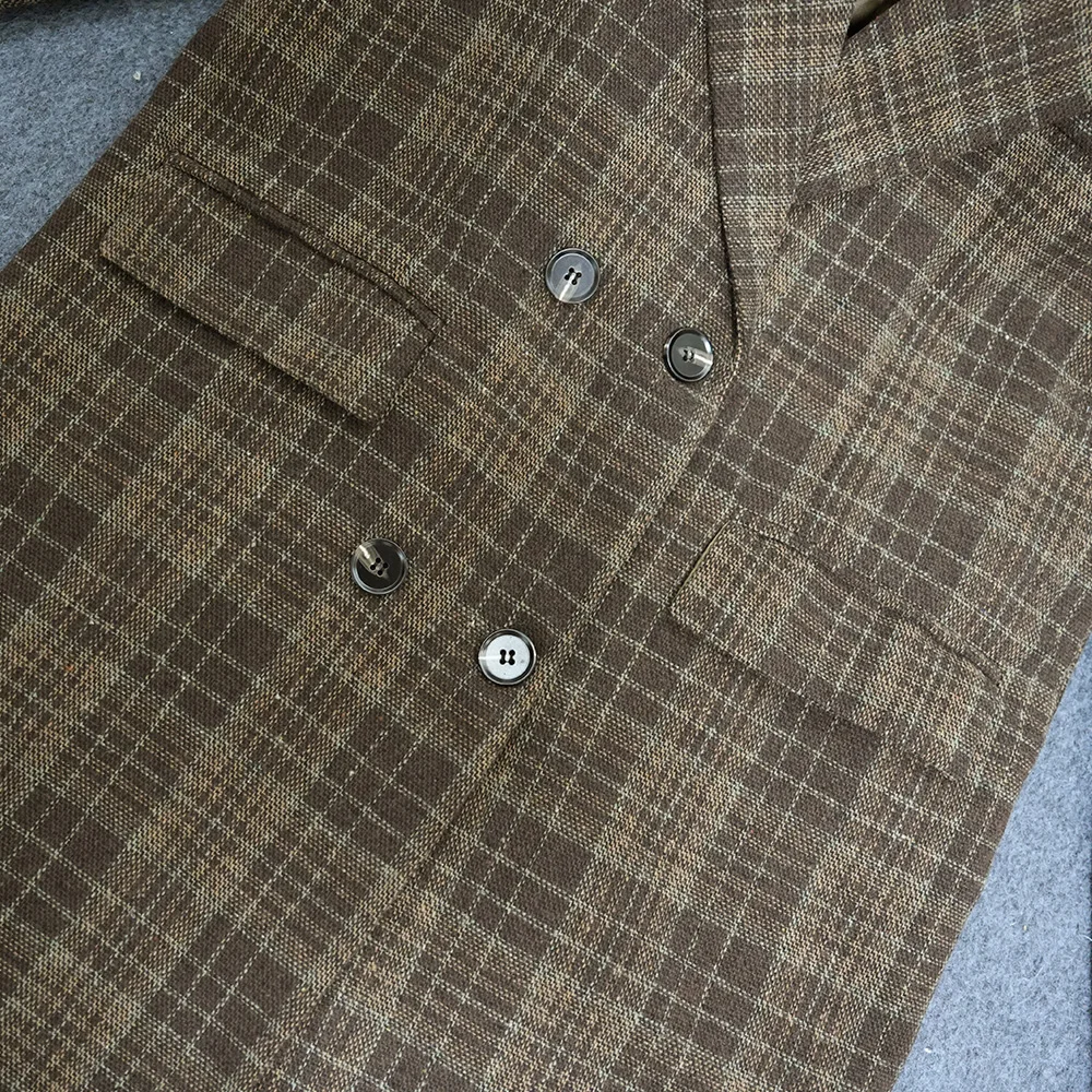 ZYHT 15545 Women's Blouses & Shirts Mint Green Tweed Blazer with Puff Sleeves & Peplum Fit Button-Detail Long Sleeve Jacket