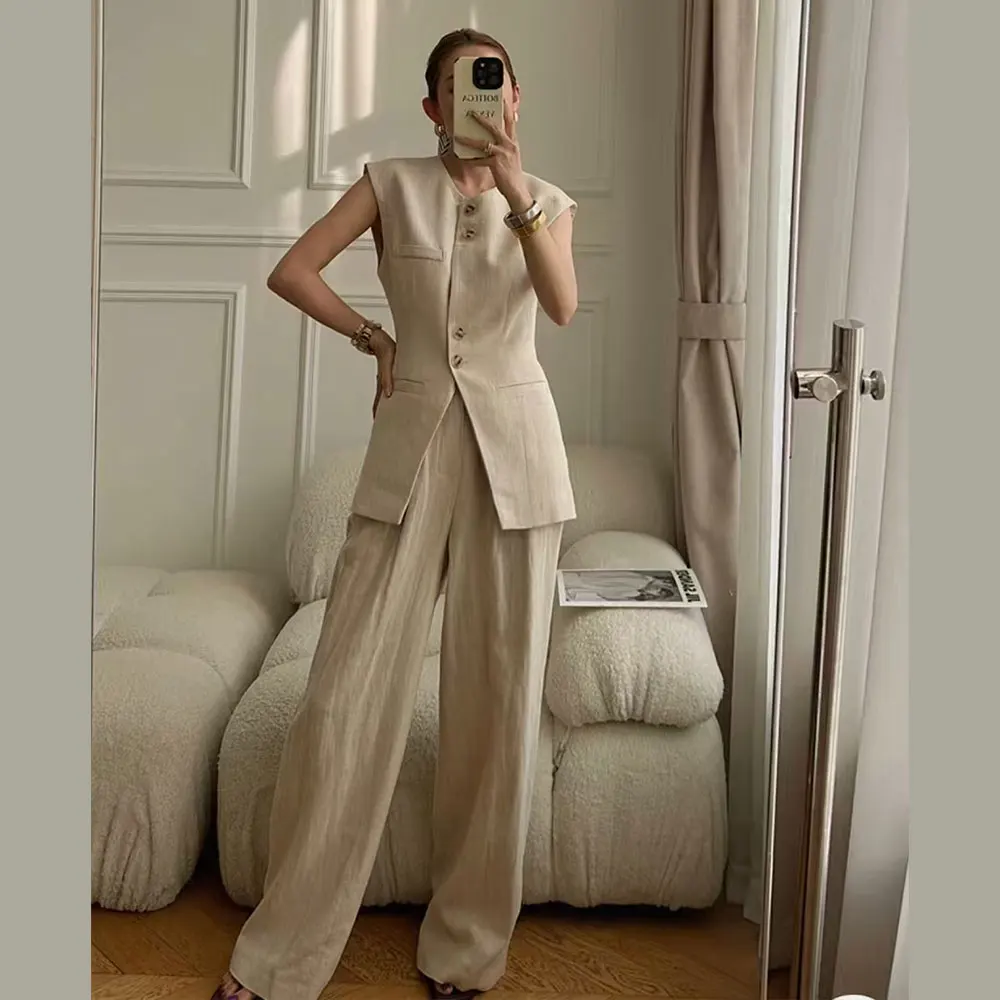 Women's Two-piece Set - Made of Cotton and Linen Fabric, Versatile to Wear, with Comfortable Lining