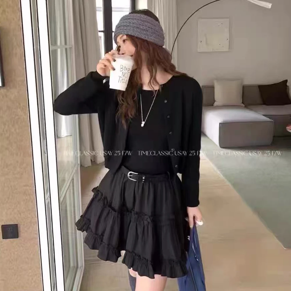 ZYHT 35239 Women's Elegant Black Velvet Blazer with White Ruffled Trim Peplum Hem & Long Puff Sleeves Chic Formal Jacket