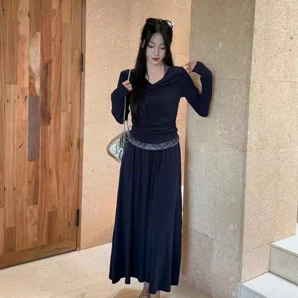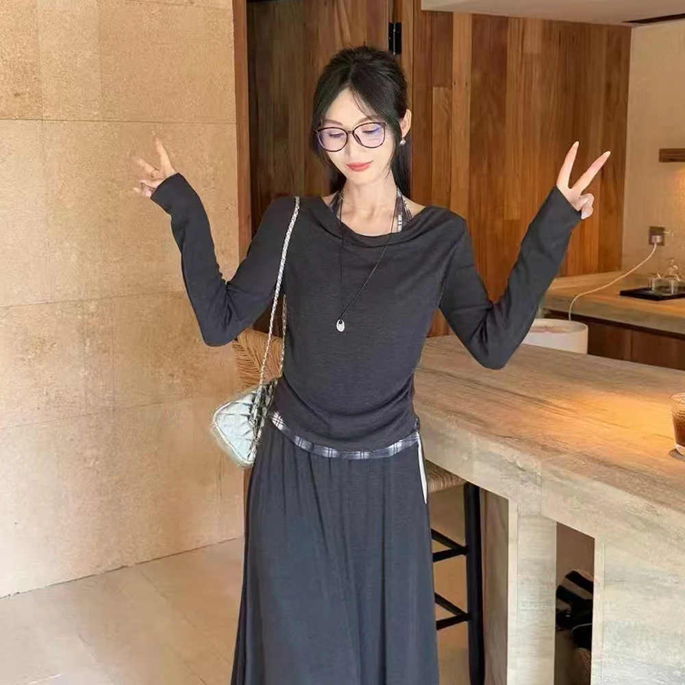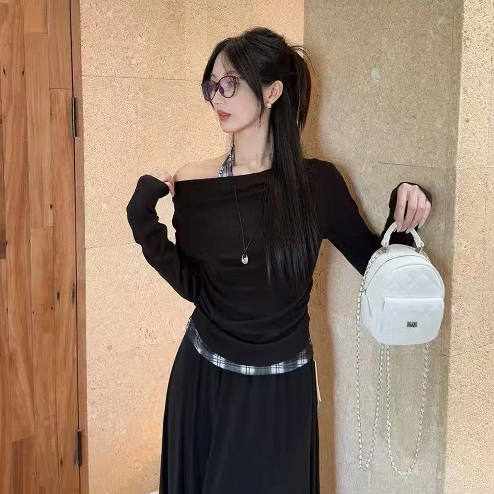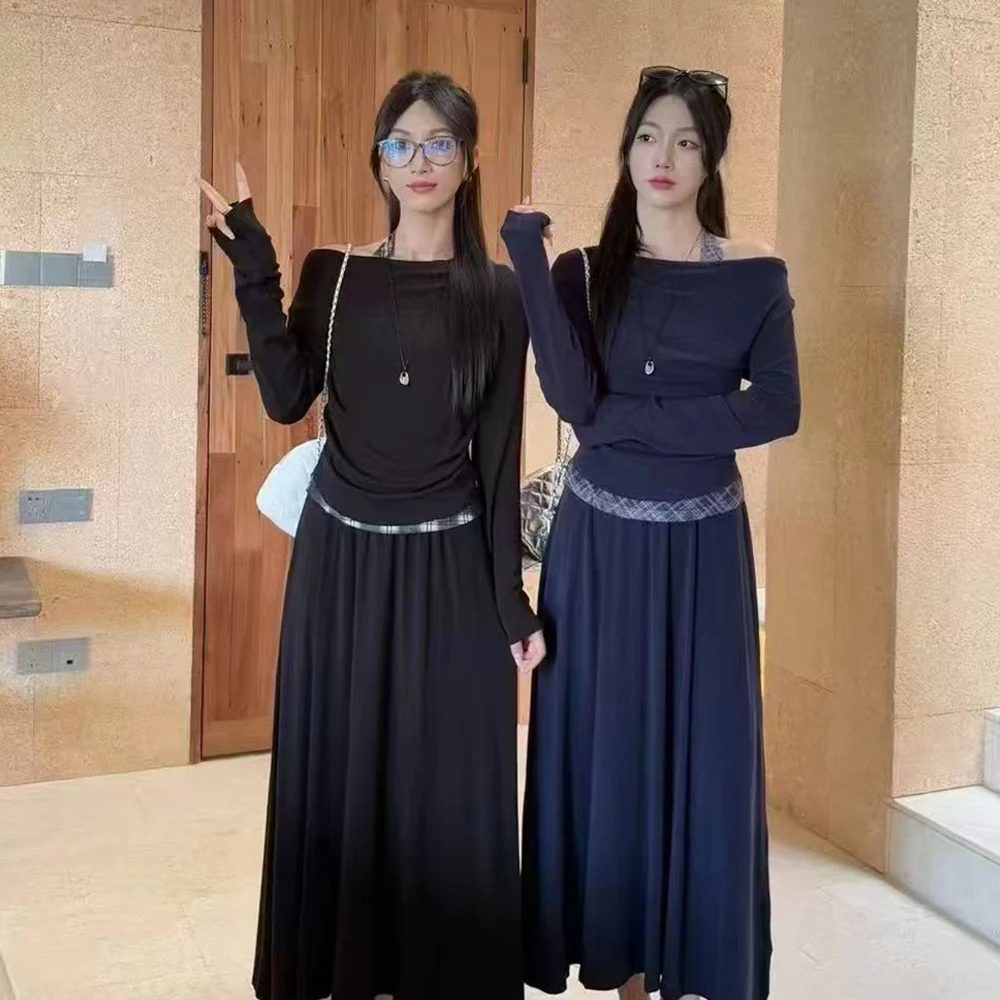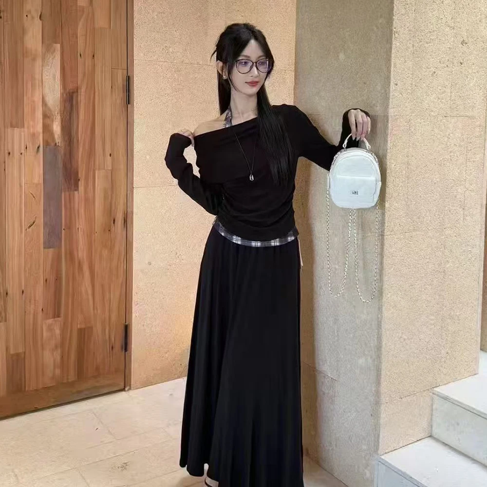 Wholesale 2026 Autumn French Slant Collar Off-the-Shoulder Long-Sleeved Dress Women's Set