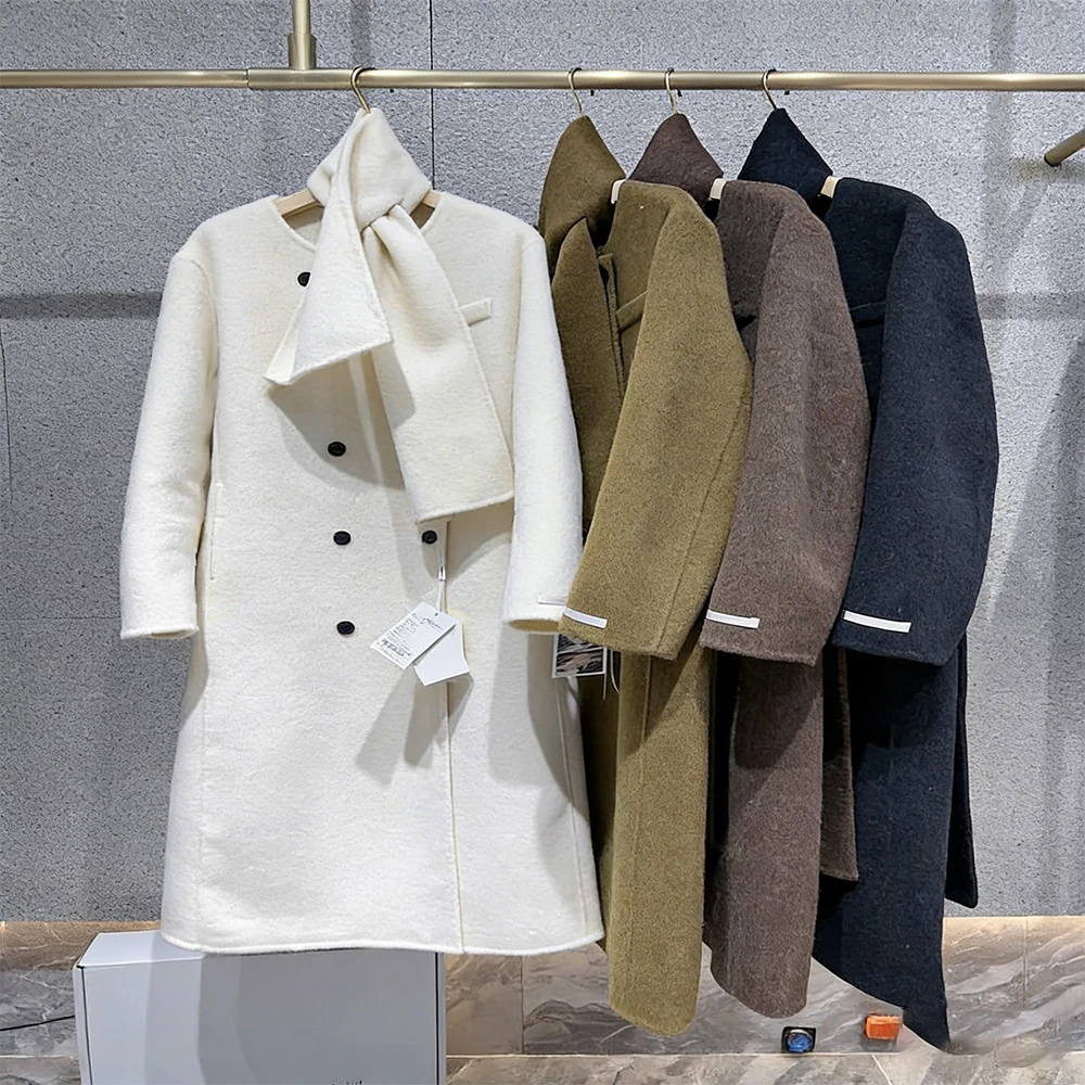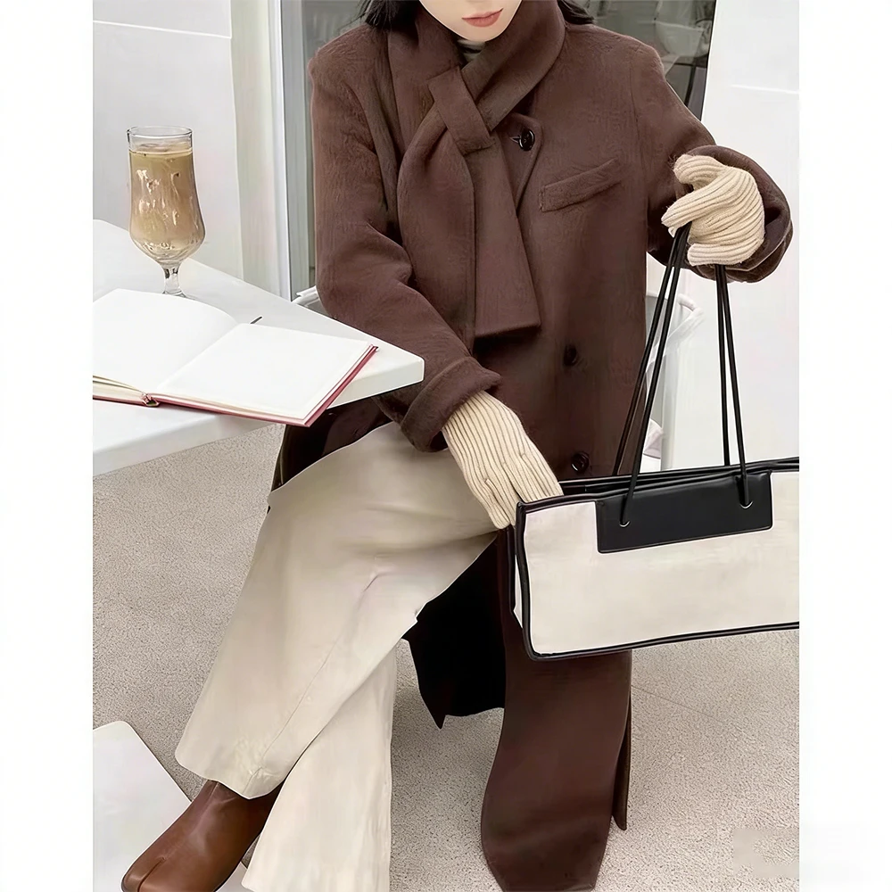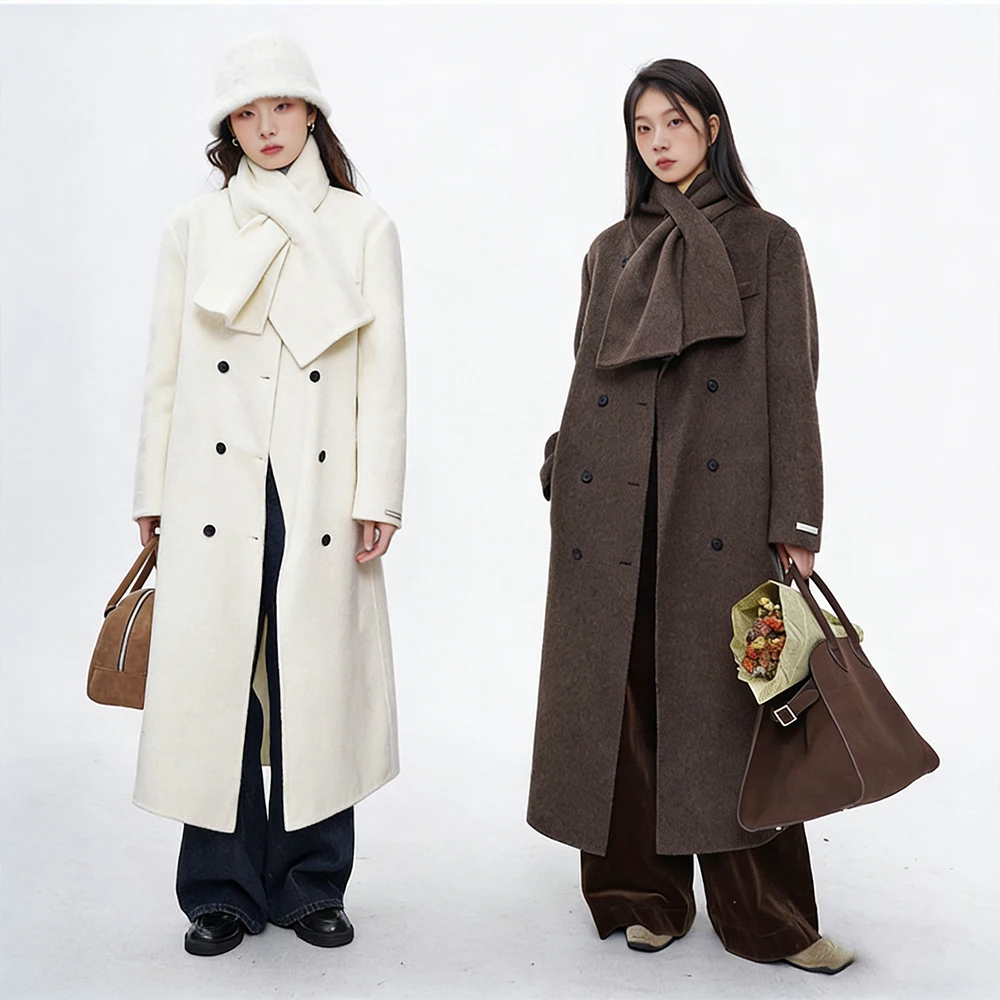 Women's Fashionable Wool Coat with Long Scarf Collar, Suitable for Autumn and Winter.