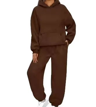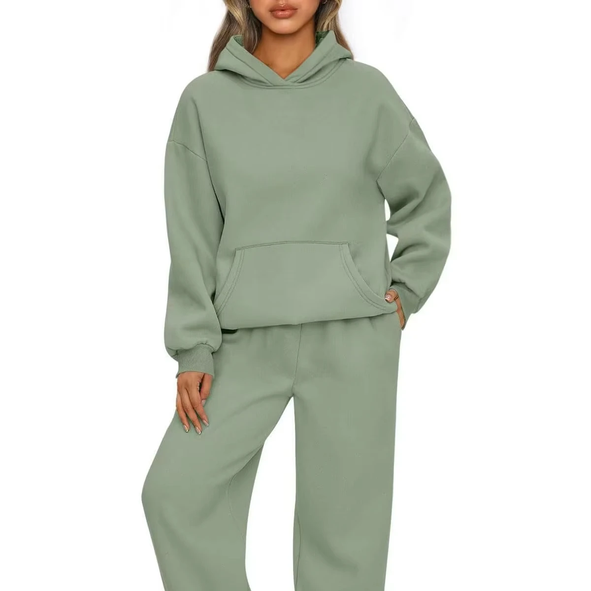 Autumn and Winter Women's Two-Piece Casual Sportswear Pants Set Hooded Sweatshirt with Ankle Length Solid Color