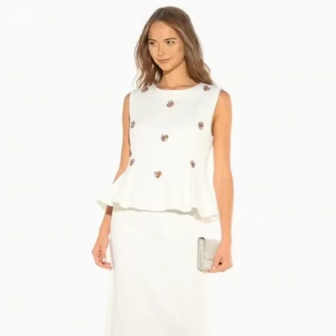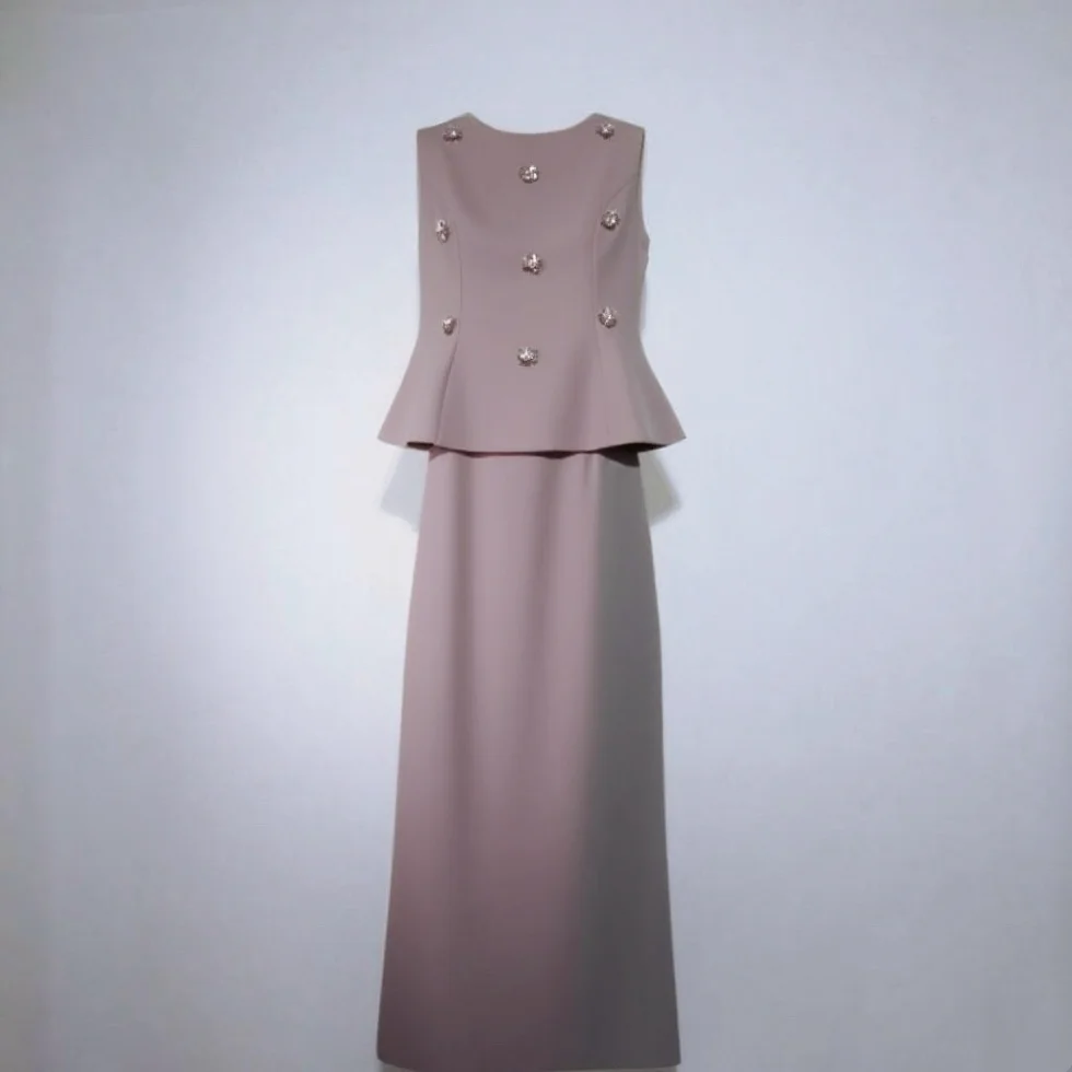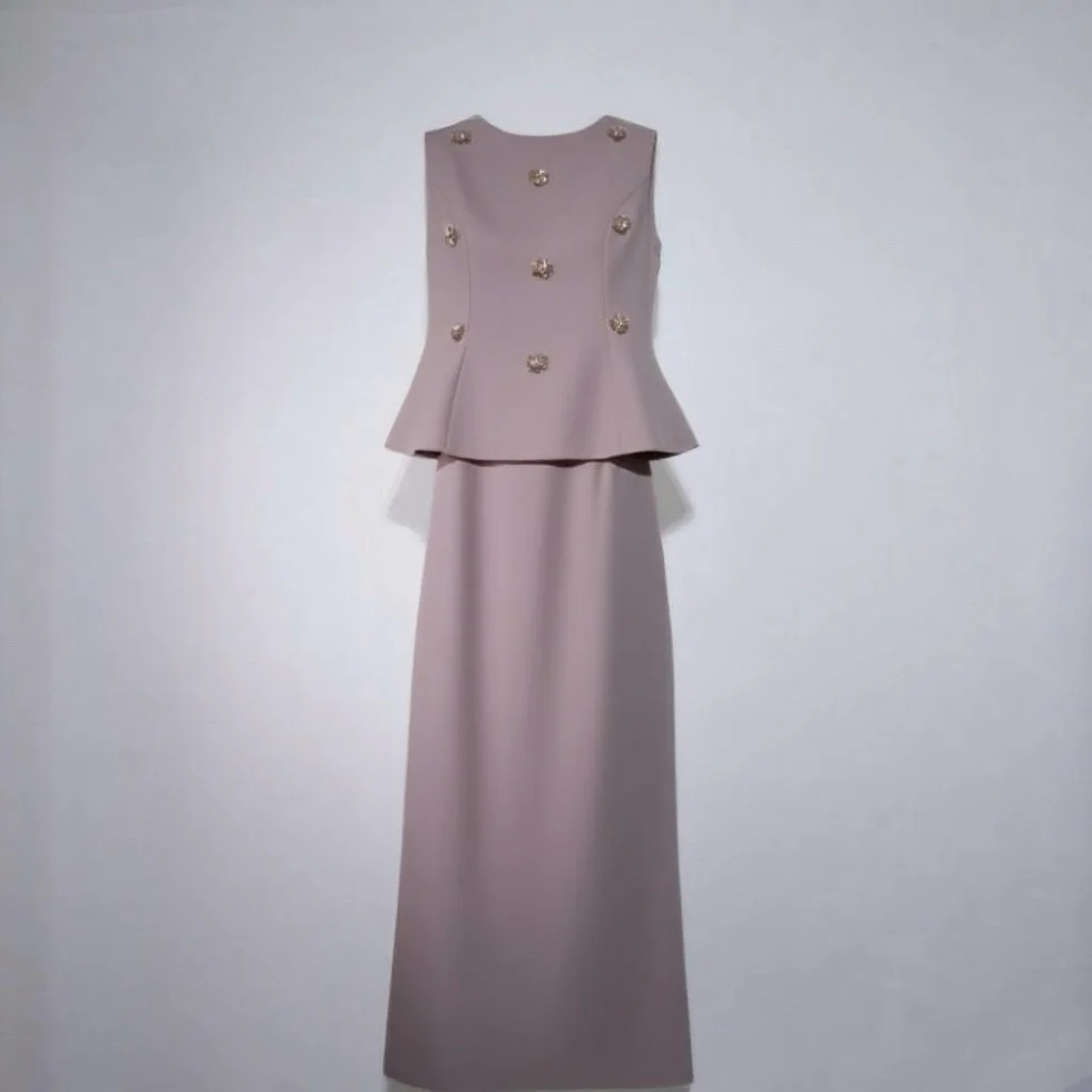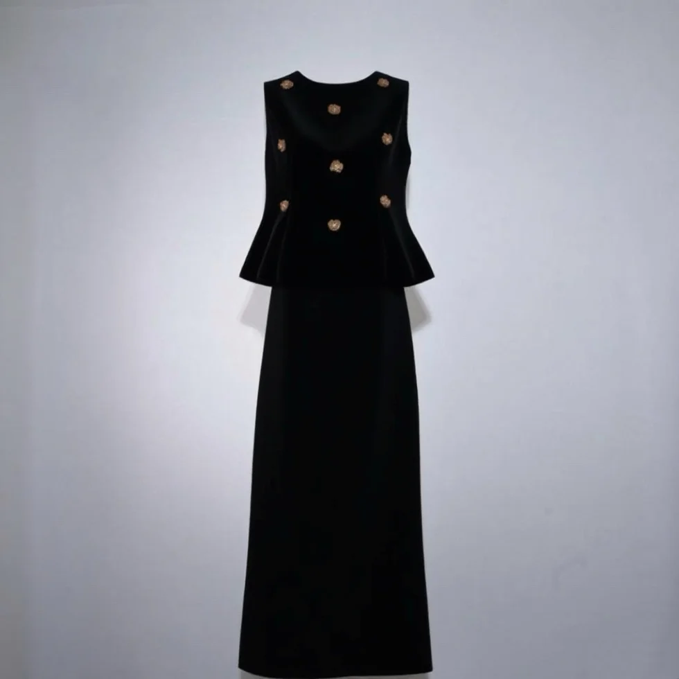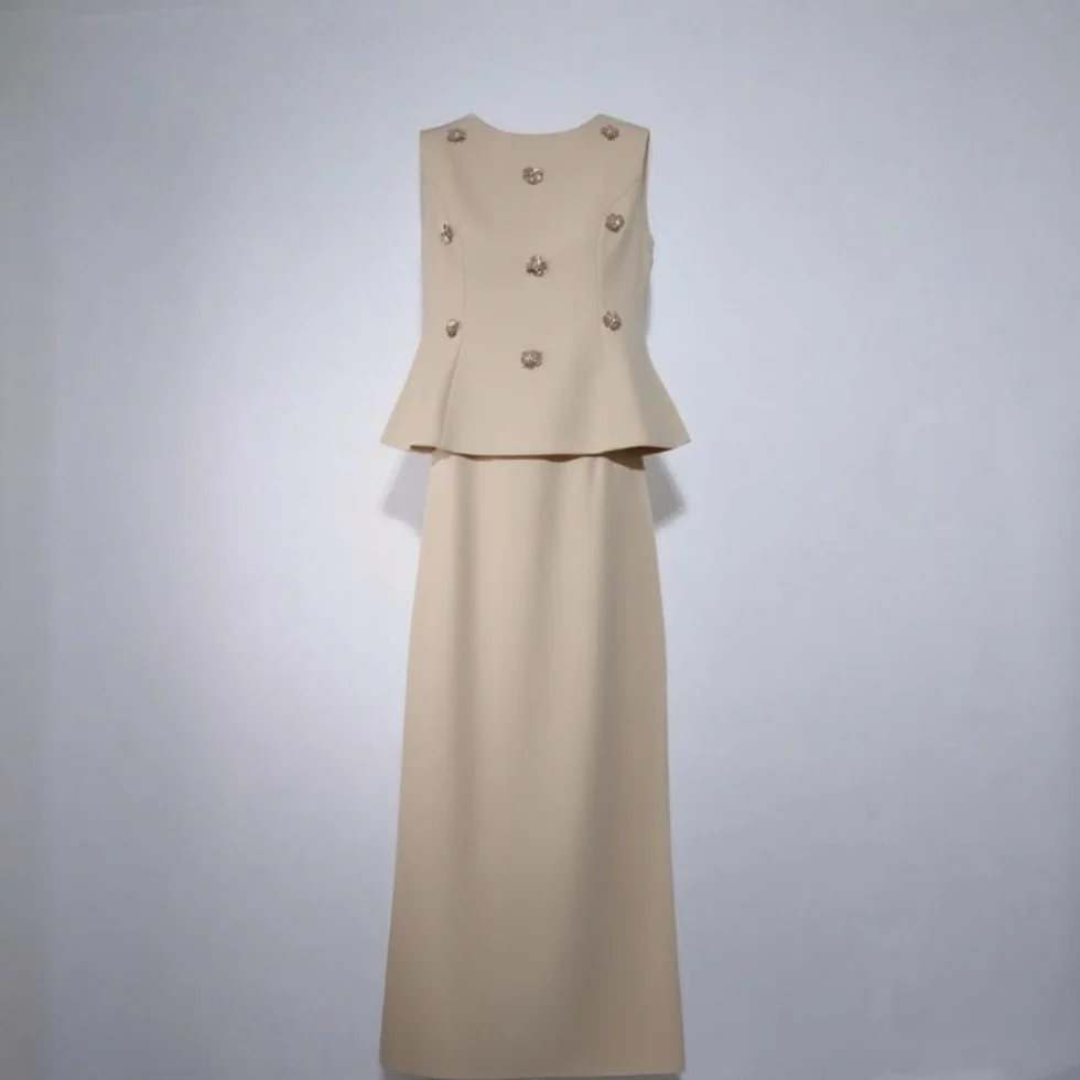 Lady's Elegant and Casual Two-piece Set: Round-neck Sleeveless Blouse and High-waisted Fitted Long Skirt