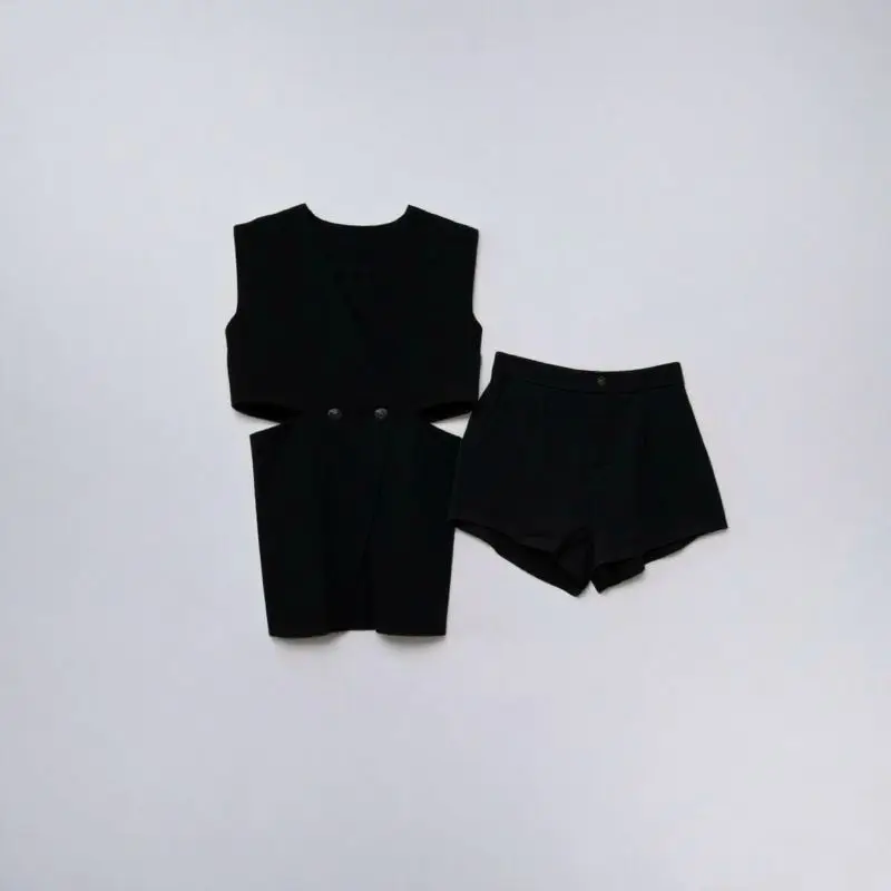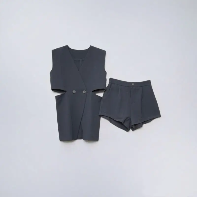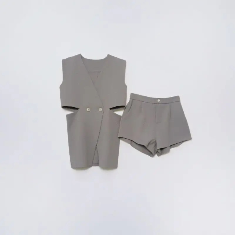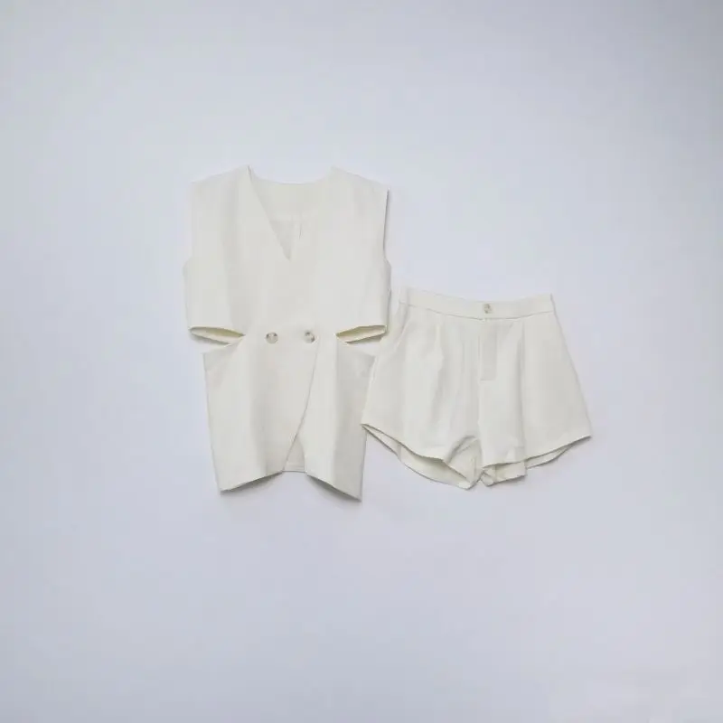 Office Lady V-Neck Solid Color Vest Sleeveless Fashion Suit Conjunto De Ropa De Mujer Elegant Women's Short Two-Piece 5576PCT