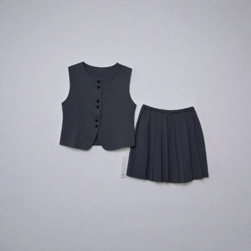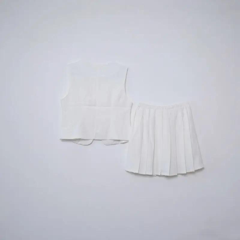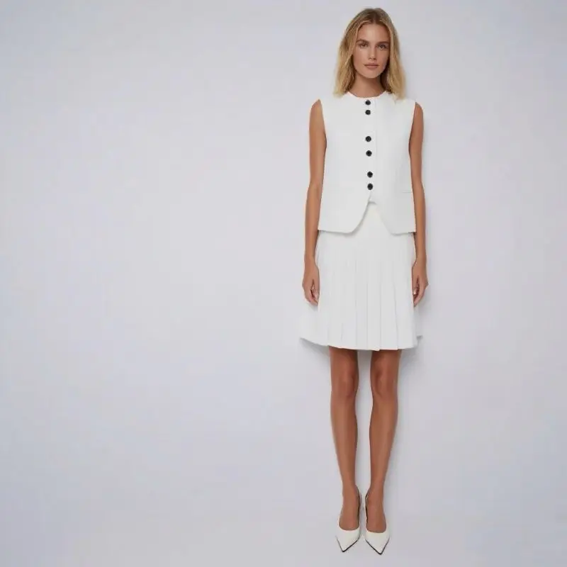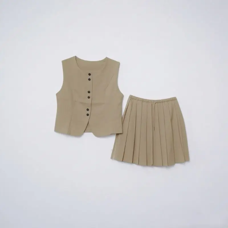 Sleeveless blazer Set for Women in Summer. New Style Pleated Skirt for Professional Workwear Two-piece Set.5578PCT