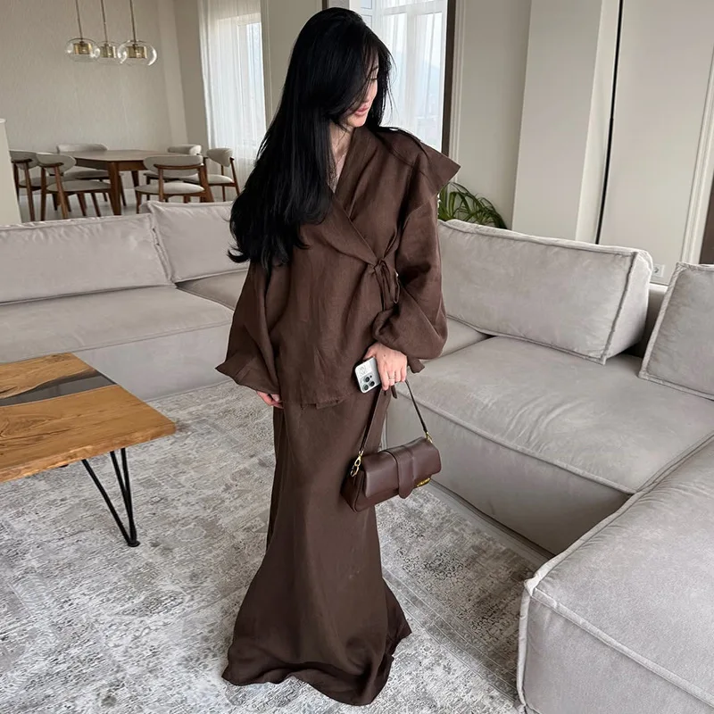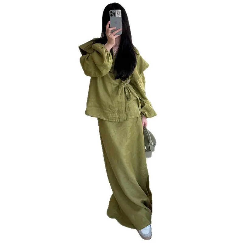 New Stylish Design Sporty Tie-worn Shirt, High-waisted Full-length Skirt, and Casual Suit Set