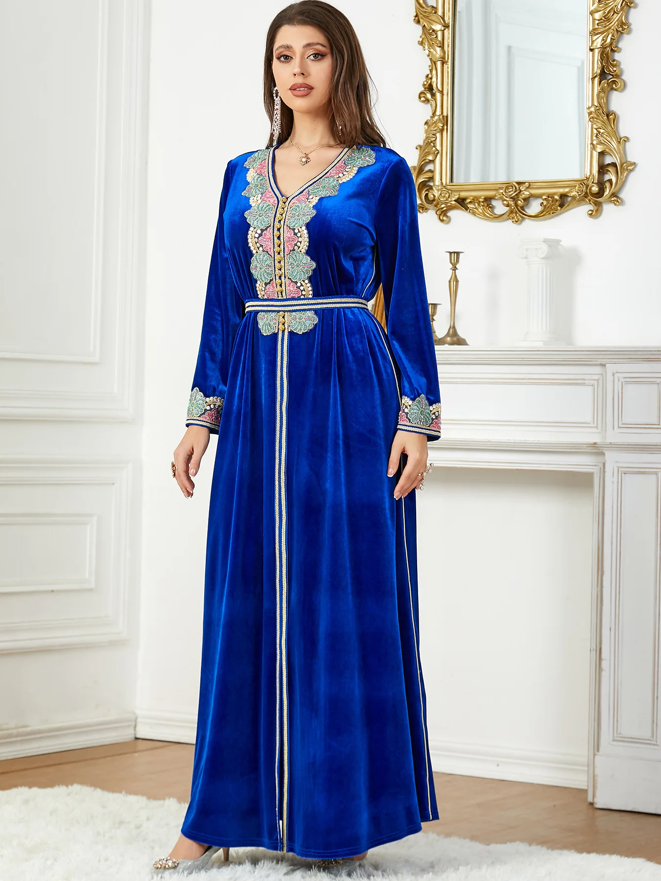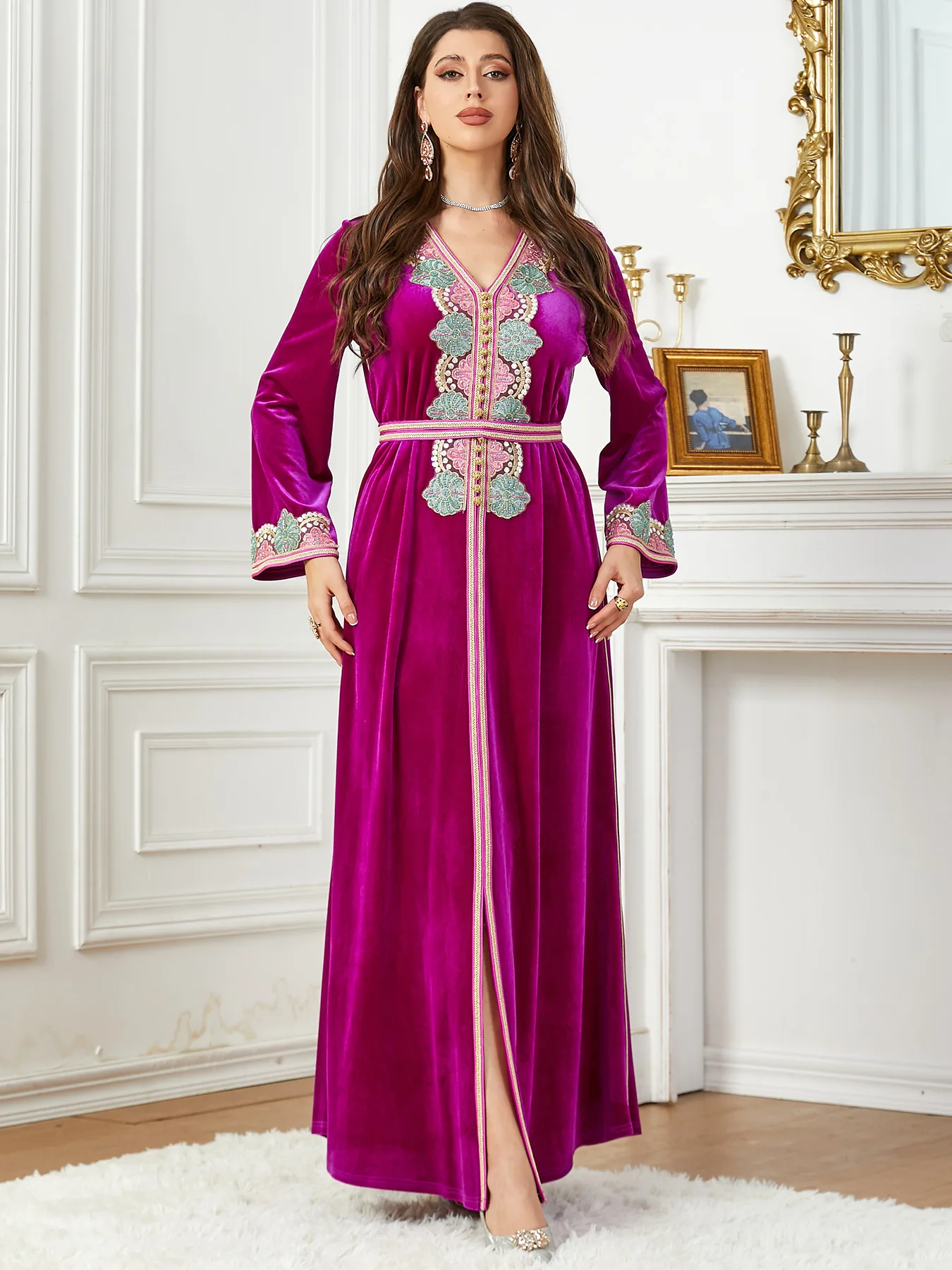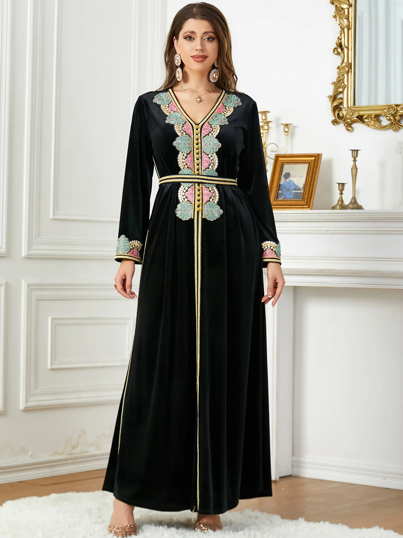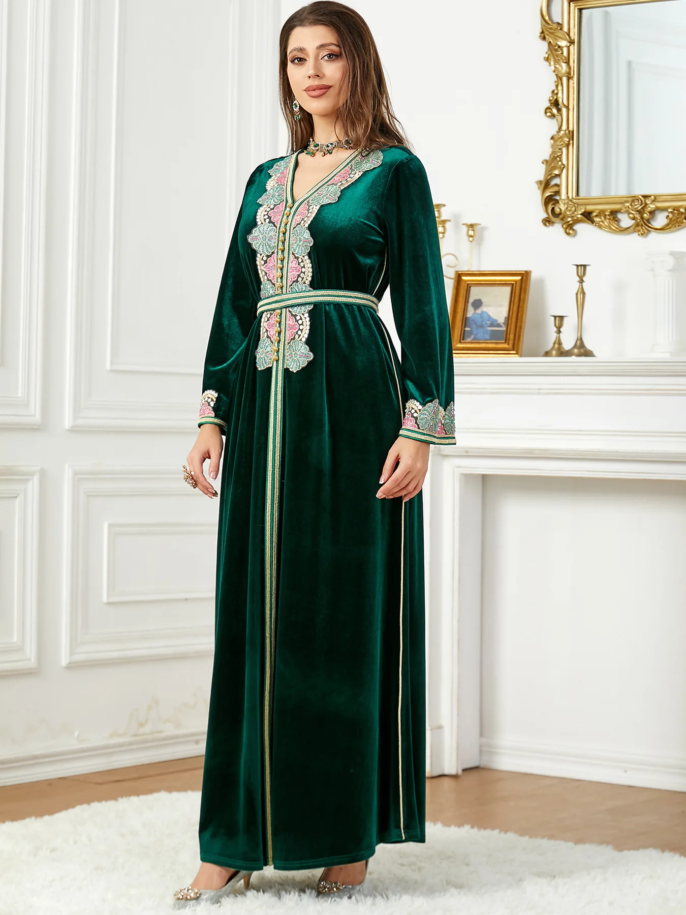 Hot Selling Embroidery Open Abaya Women Muslim Dress V-Neck Long Sleeve Eid Abaya